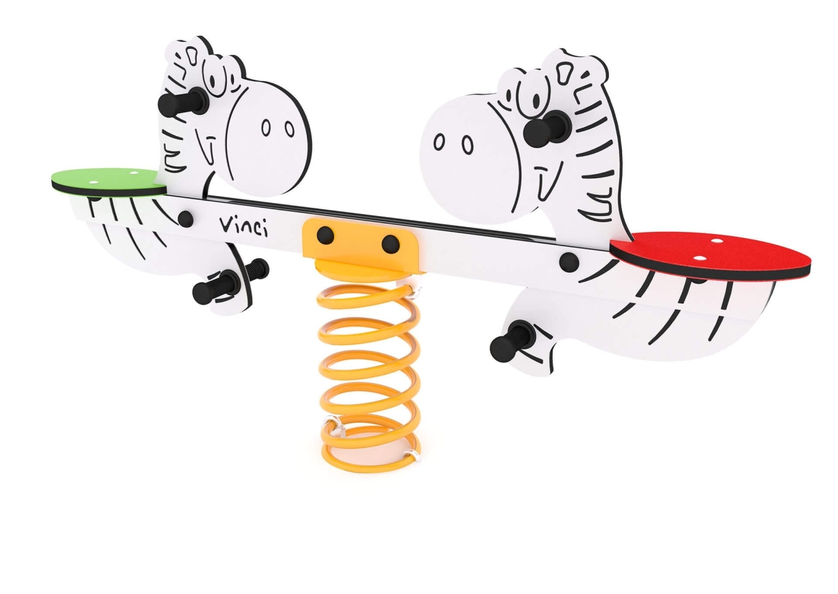 A fun addition for a playground, the zebra seesaw is great for a  character addition to any play space.