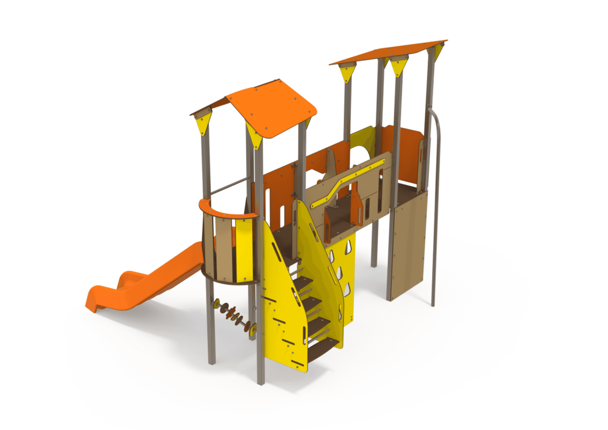 This Cool Multiplay with Climbing and Slide is great for children aged 2 - 10 years as it provides them with multiple activities. With climbing pole, cut out climbing wall, steps with railings, climbing net, metal climbing ladder, rotating shapes and a slide.