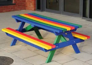 Are you looking to add more seated areas to your outdoor space? Our Recycled Heavy Duty Picnic Bench is made from recycled plastic and is sure to capture the attention of passers-by in its rainbow colour scheme.