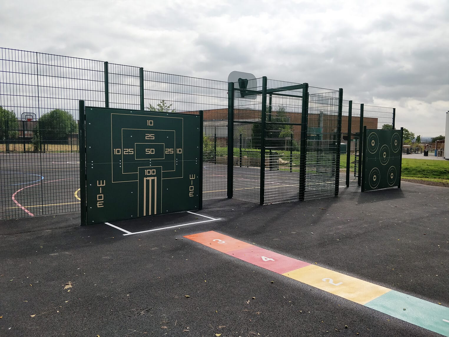 The children have really enjoyed the new sports facility. The MUGA offers children the chance to play basketball, football and netball, with cricket options on the panel on the outer wall along with target practice on the skills wall. The four mini goals also allow two games of five a side to be played next to each other within the court. A great installation with numerous possibilities for PE lessons and sports events at the school.