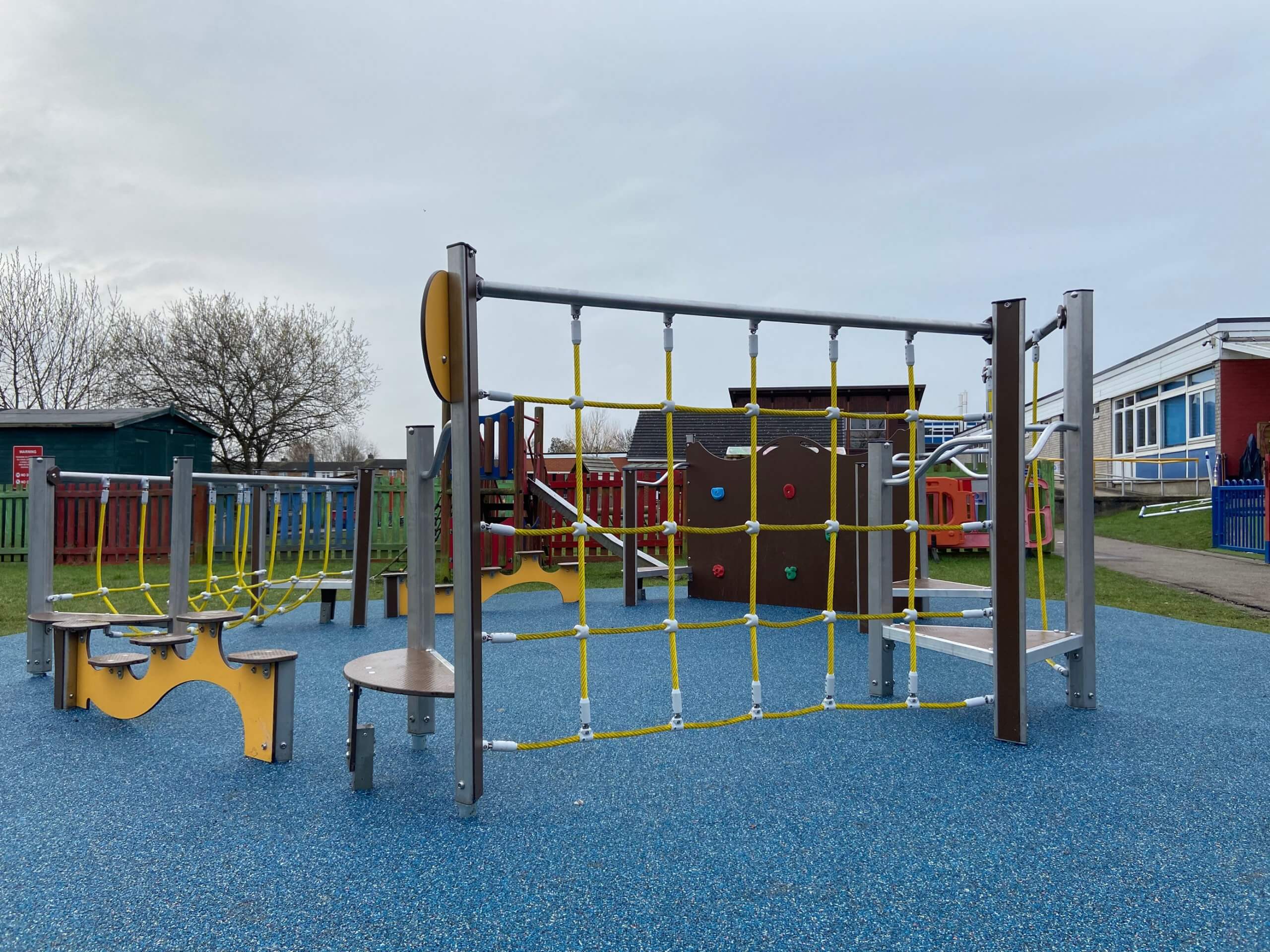 The client wanted to encourage KS1 children to be more active so wanted a piece of outdoor equipment that would allow them to play and exercise. They also wanted to resurface the area with an impact absorbing surface.