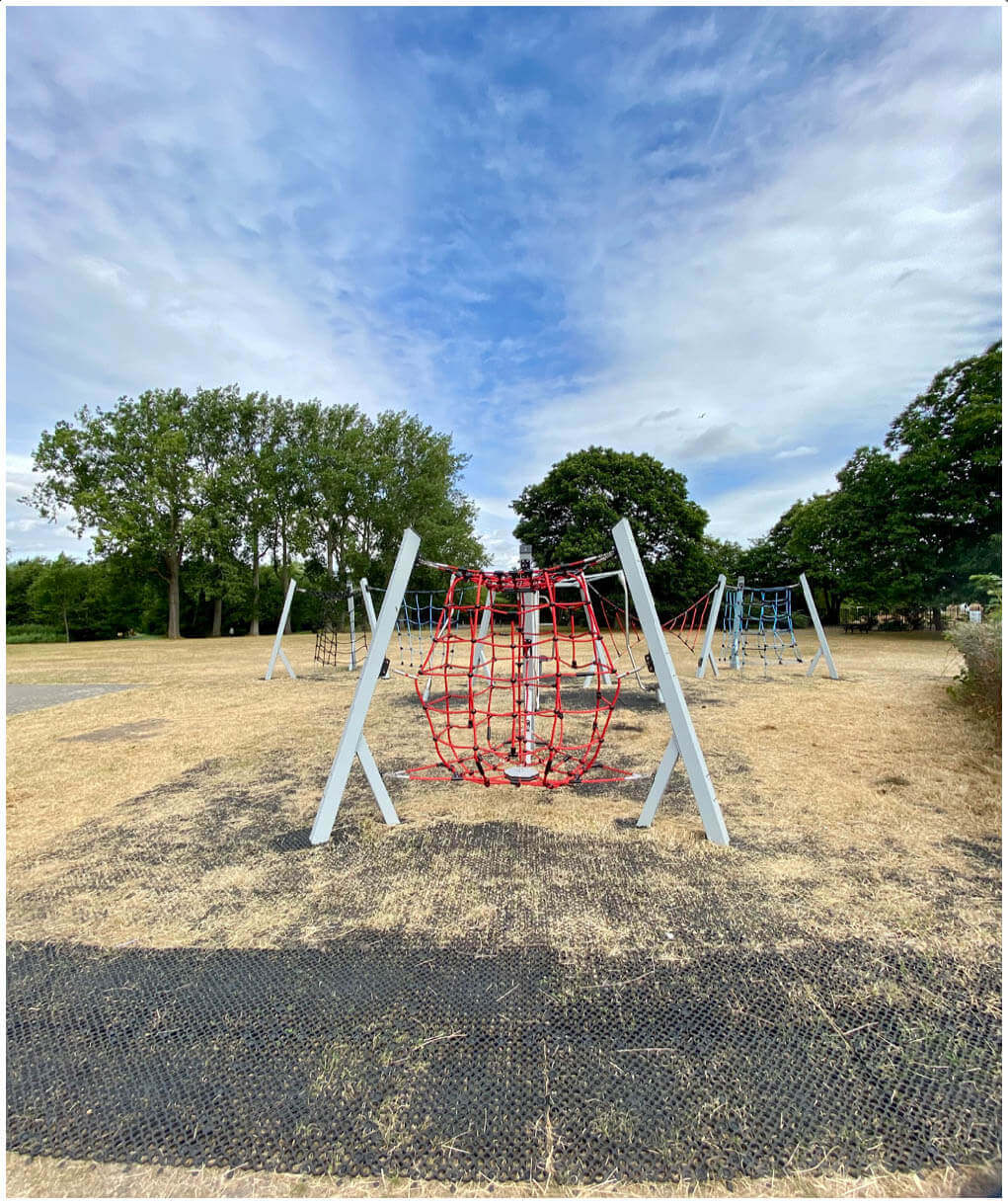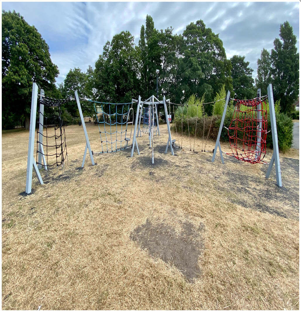 The Assault Course style equipment has been a hit with the local teenagers. The trail is made up of Rope Ladders, Spinners and Climbing Nets. Grass Matt safety surfacing was also incorporated to keep the ground safe.