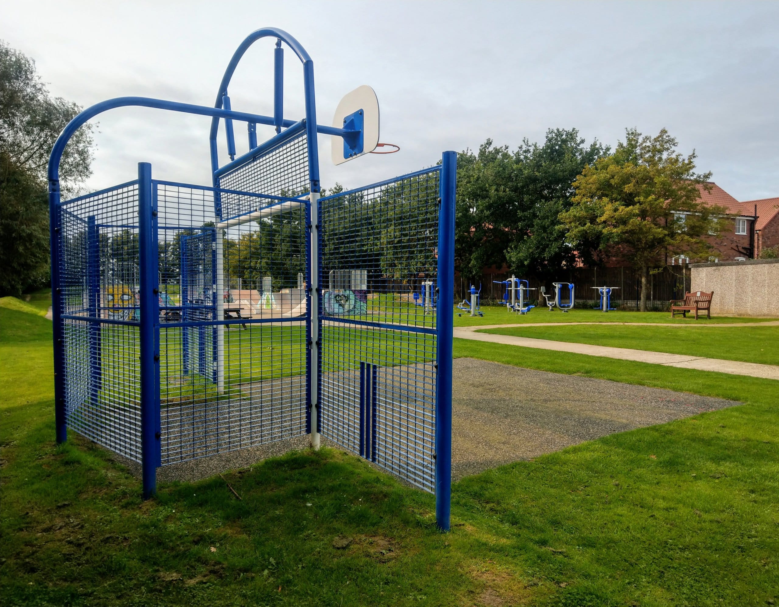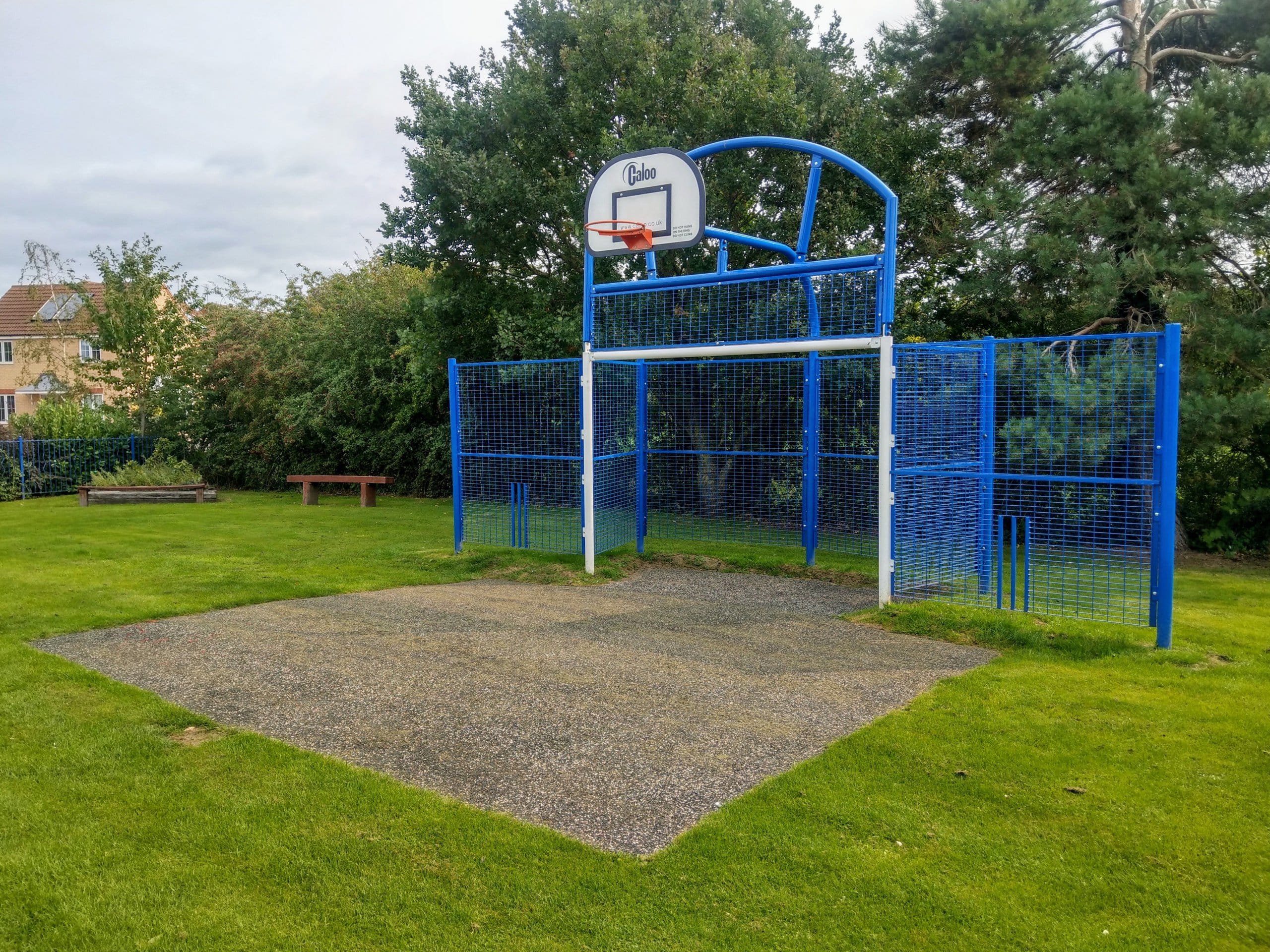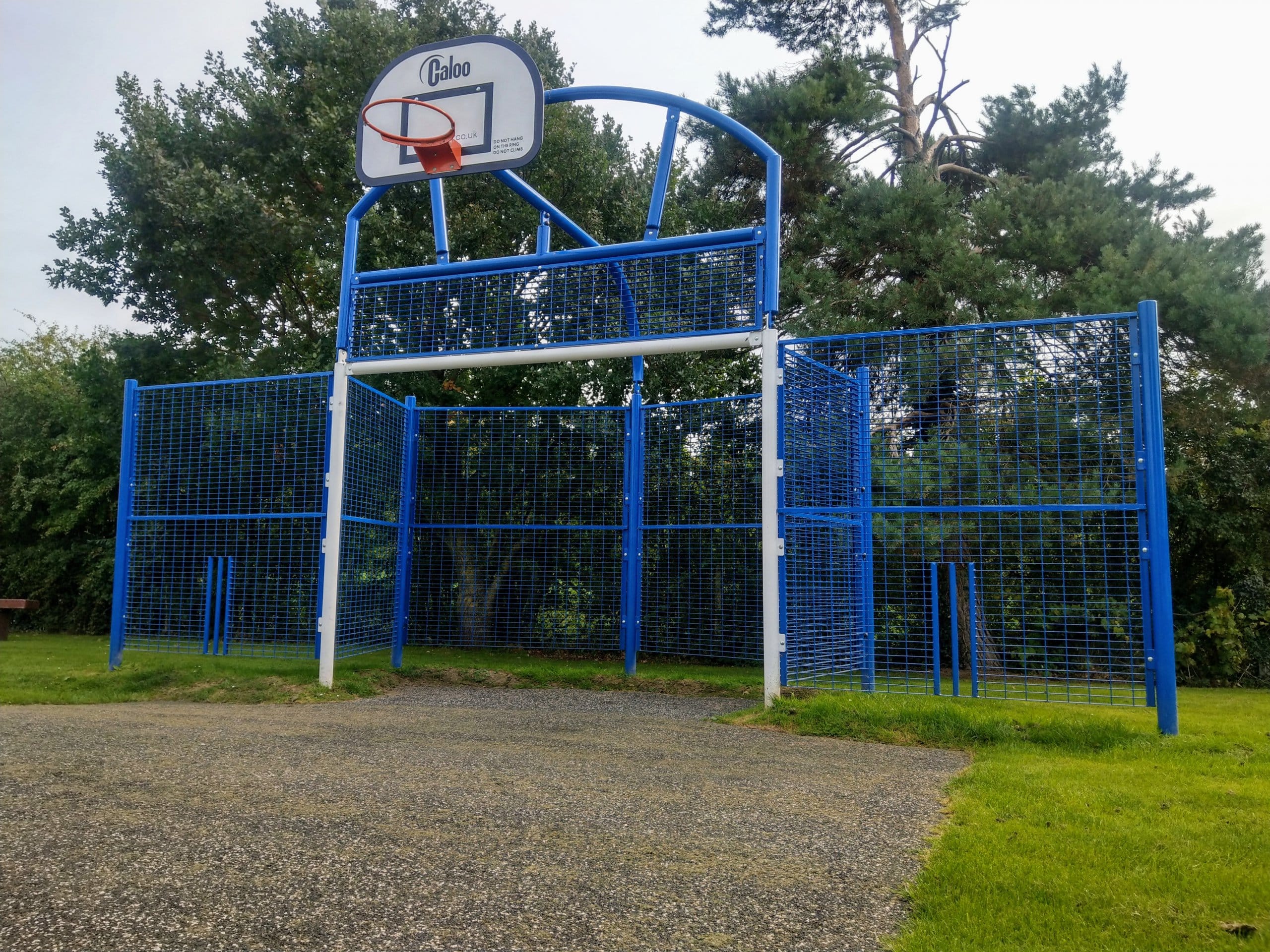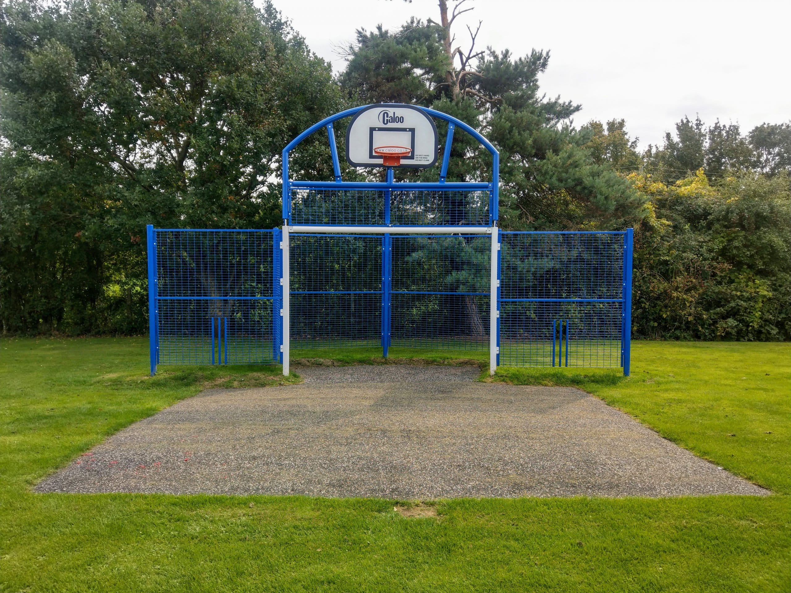 The Client wanted a multi-use goal end with basketball ring and backboard, football and cricket wickets to offer the maximum sports. Surfacing was required to provide a strong surface for regular use.