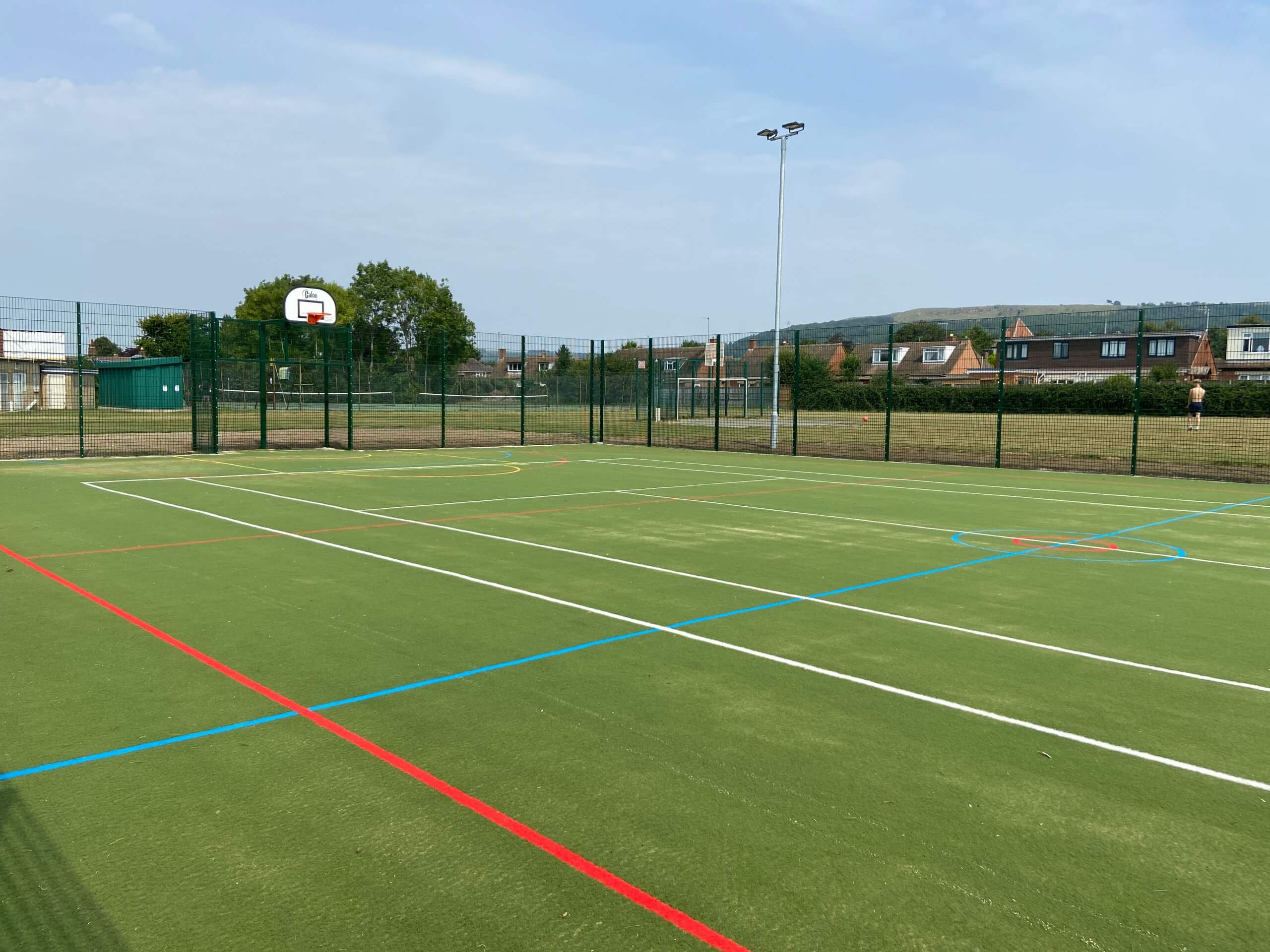 The Client were looking for a new MUGA sports zone for a range of sporting activities, available to be hired out to local groups. A Daily Mile track was also required around the field alongside a new outdoor gym space.
