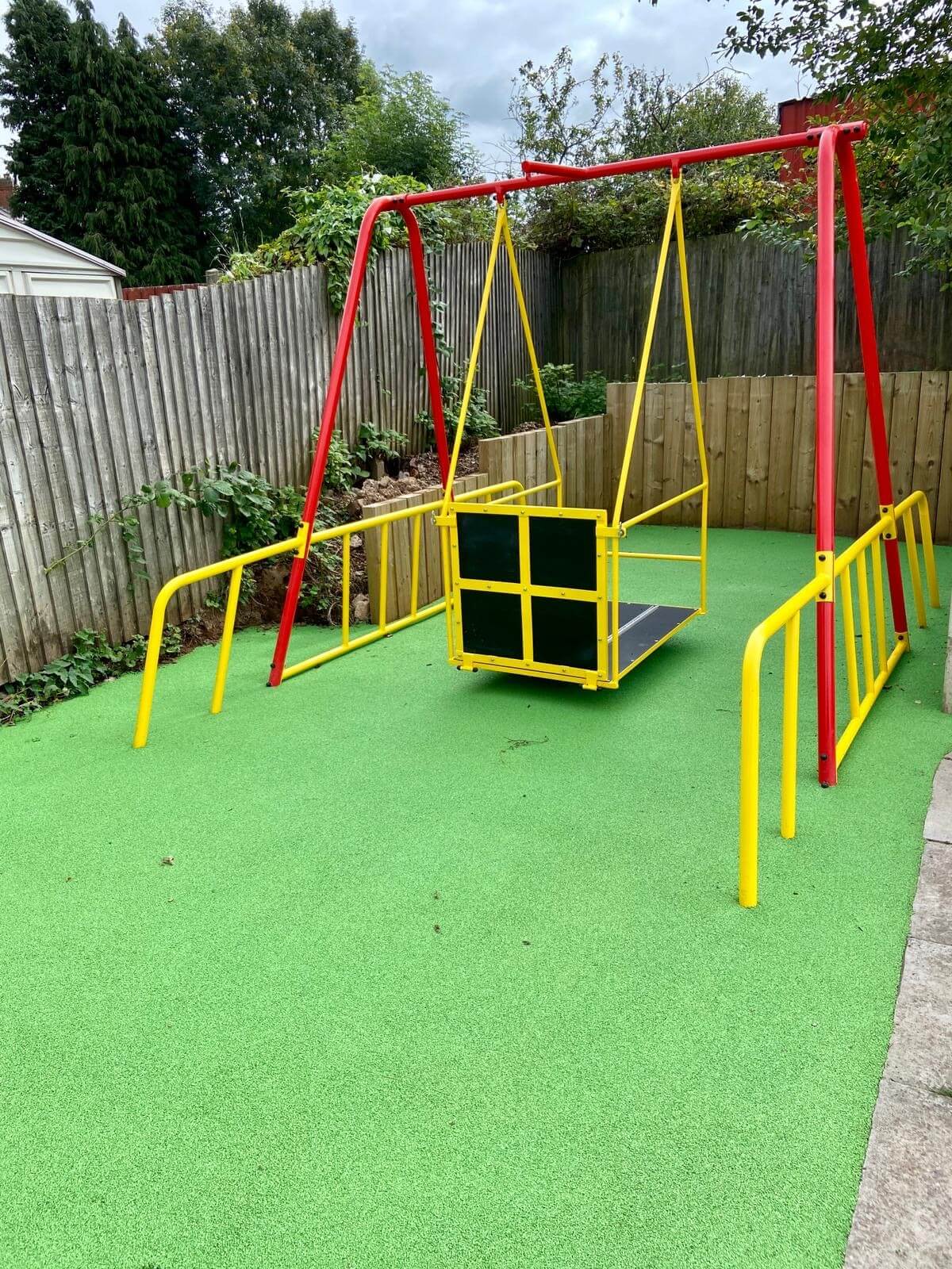The Client wanted a wheelchair swing with safety surfacing installed into their grounds. The building is used by local children with disabilities and their families. A charity-based organisation.