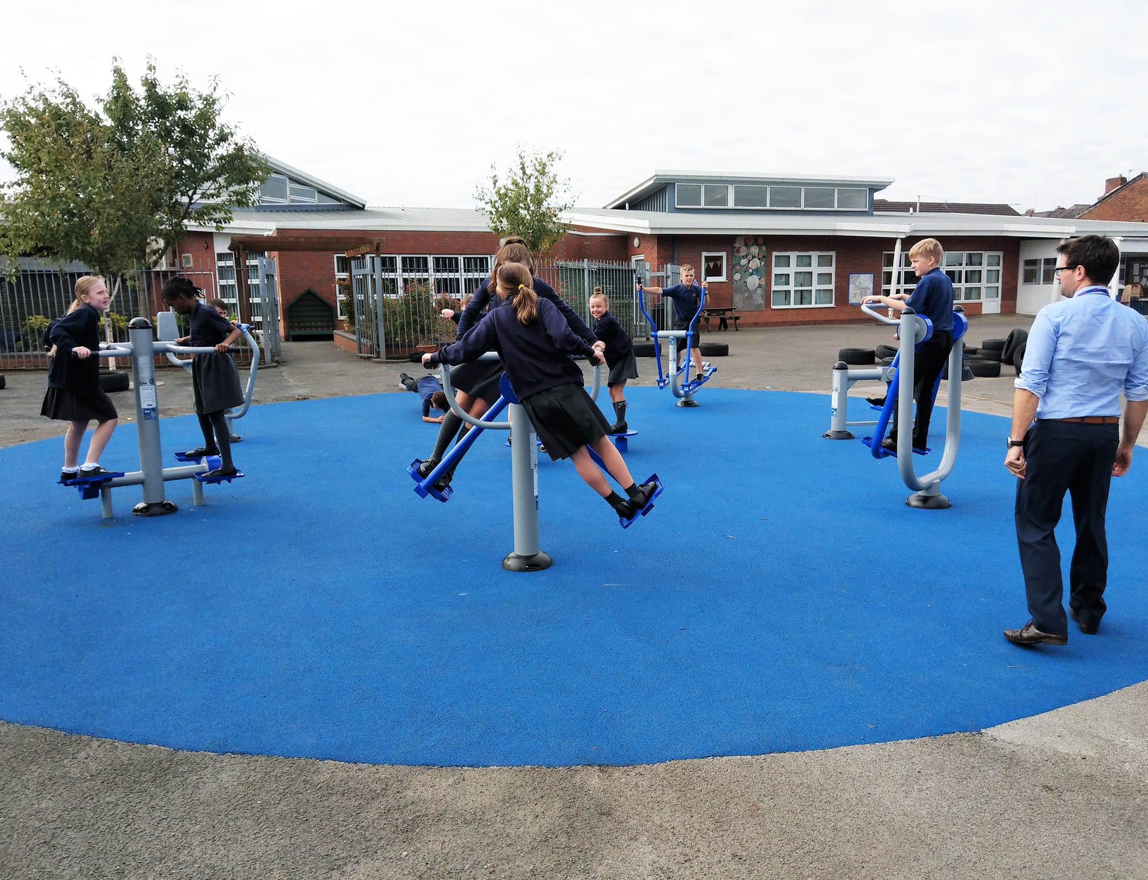 Being located within the playground means the units can be supervised at all times by staff and arrangements of the units mean that children can socialise while exercising.