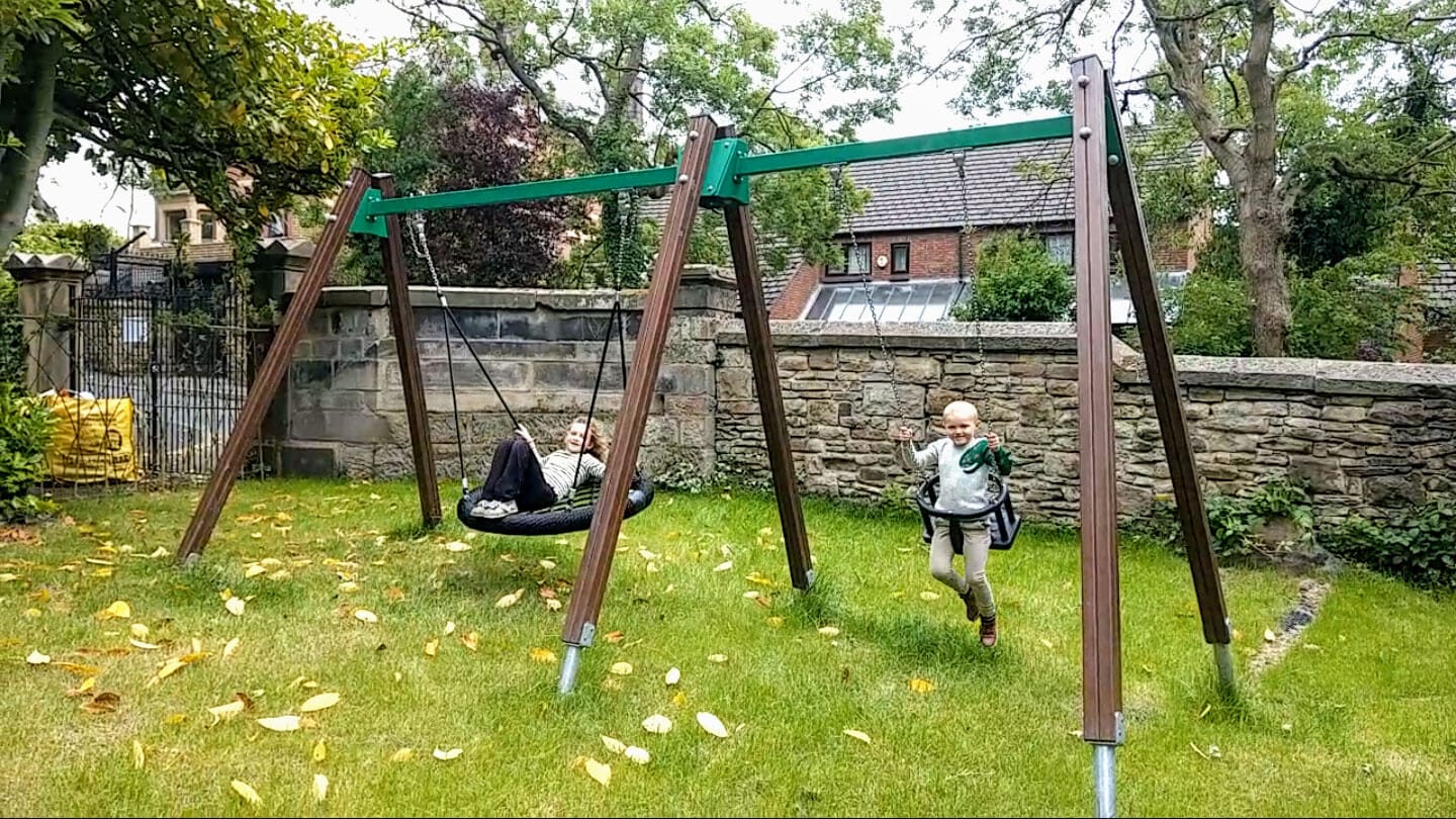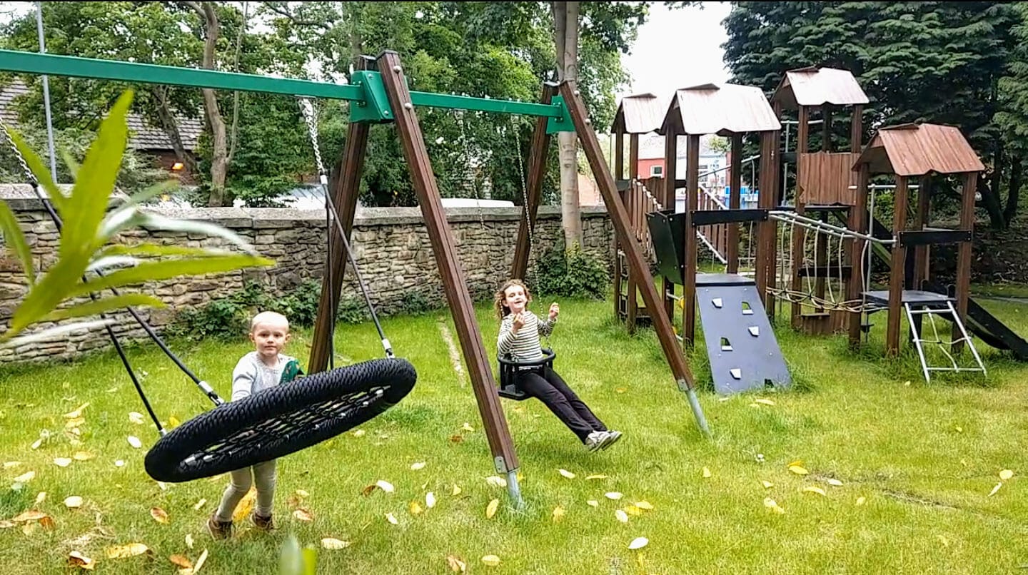 The multiplay is packed with play activities and different level platforms and slides. The swings, roundabout and springer offer different play opportunities within the same space.