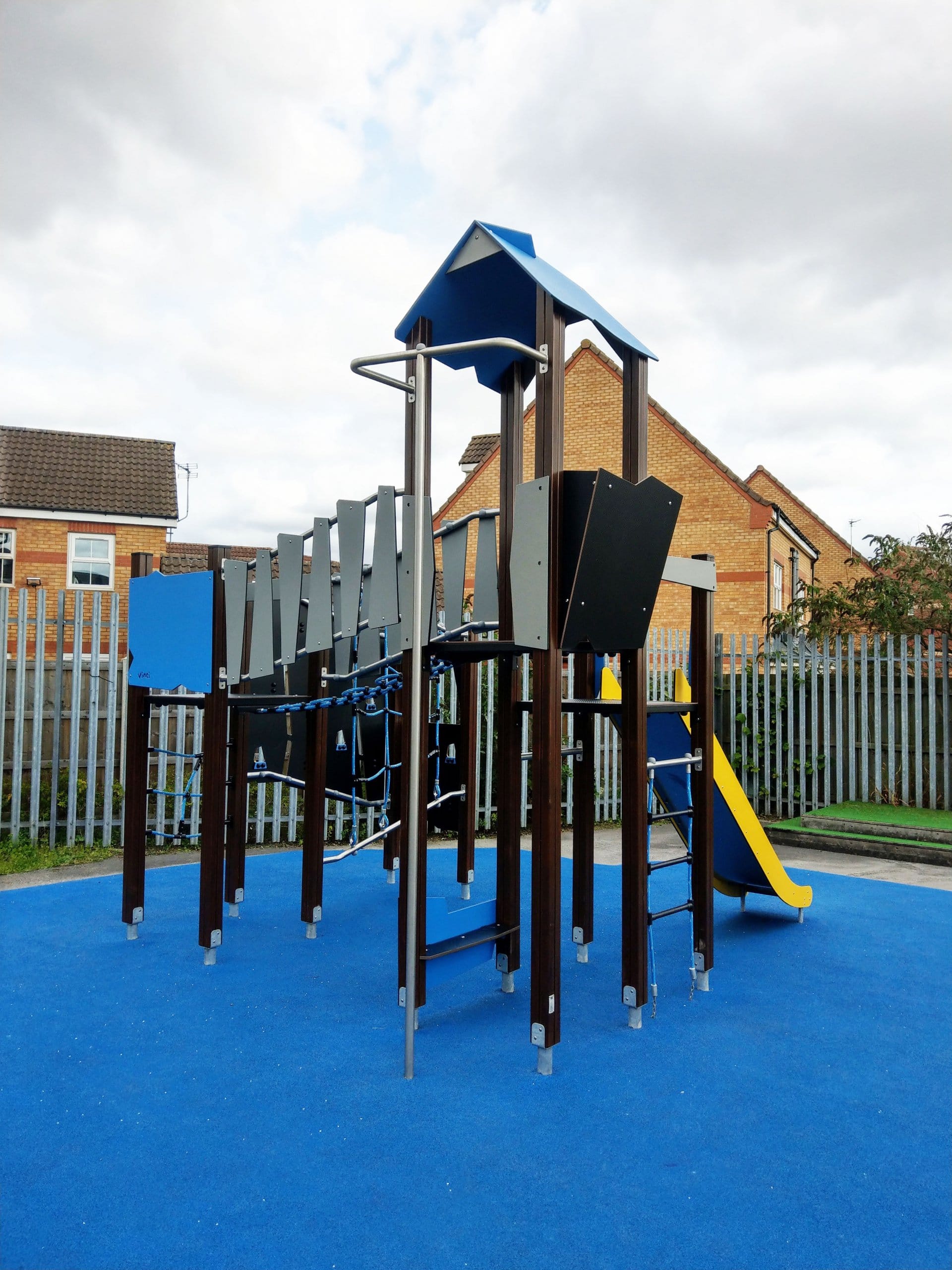 The wet pour surfacing offers a safe and colourful setting for the new unit which is durable and suitable for year-round use.