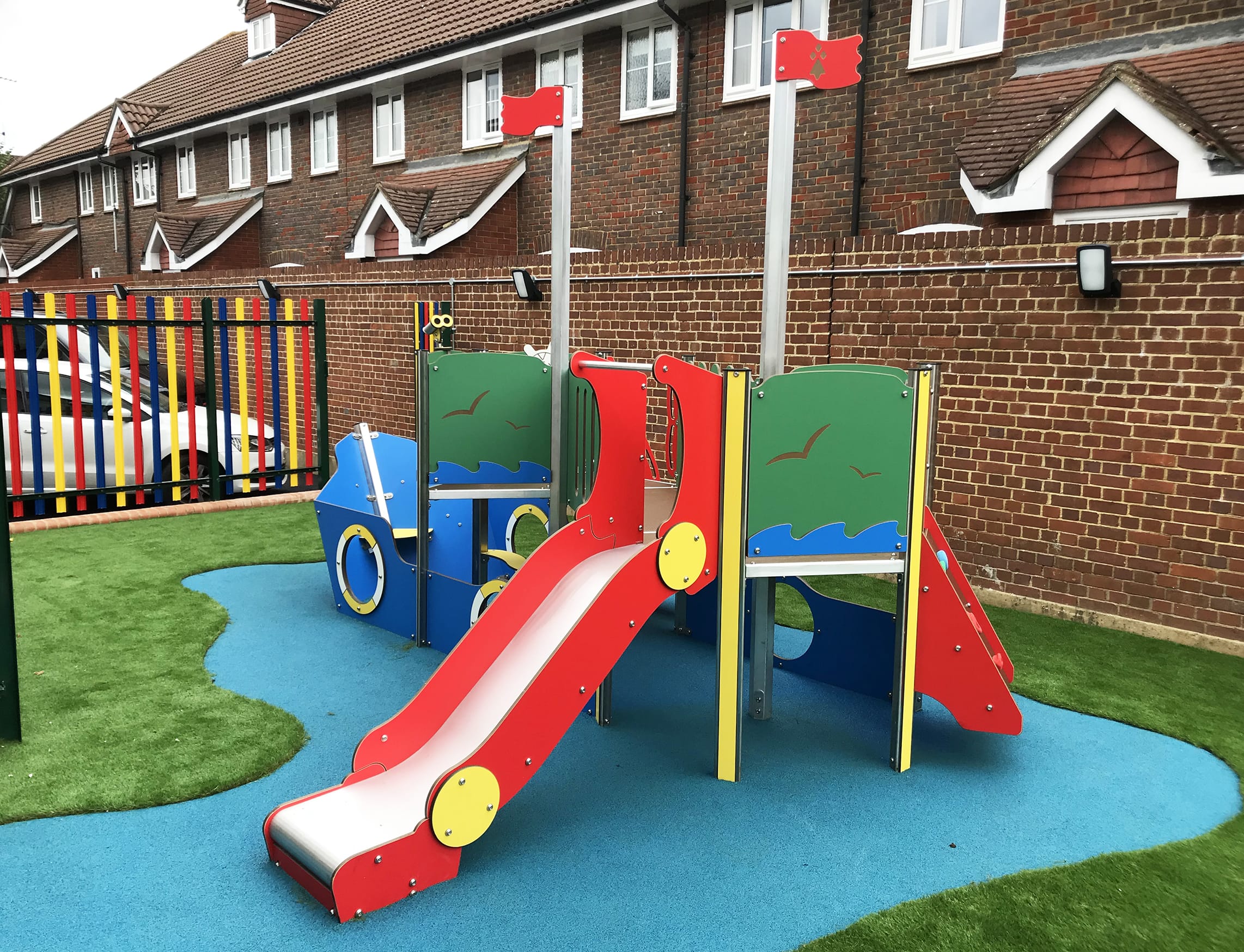 As the Client selected one of our Quali Cite boats they were able to customise the colour of the boat to their requirements. The Client chose multi colours to fit the theme and style of the nursery. The boat has proved a huge success with the children and the low level play options are perfect for this age group.