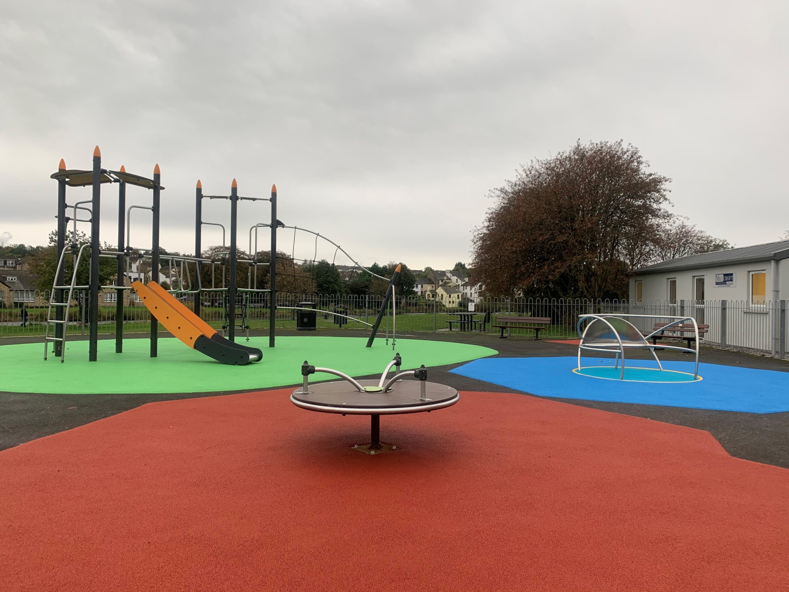 Each colour defines a new play opportunity for the children and all the correct safety regulations are now in place for the surfacing under each unit. The wheelchair roundabout has now brought an element of inclusive play to site for all users to enjoy.