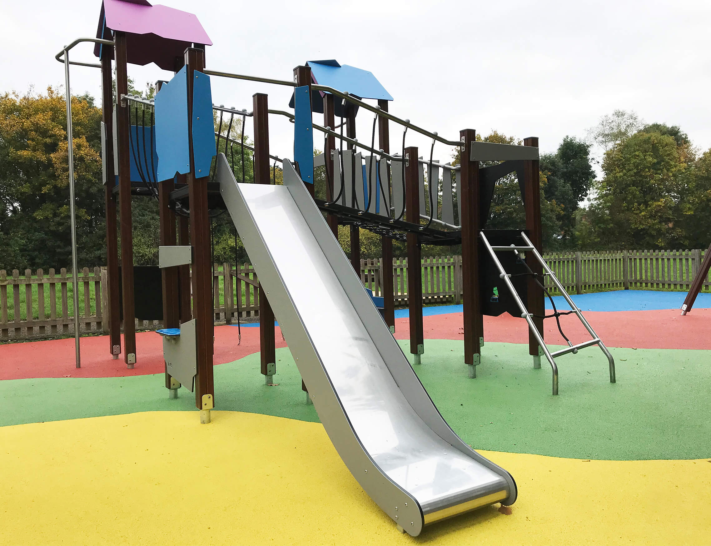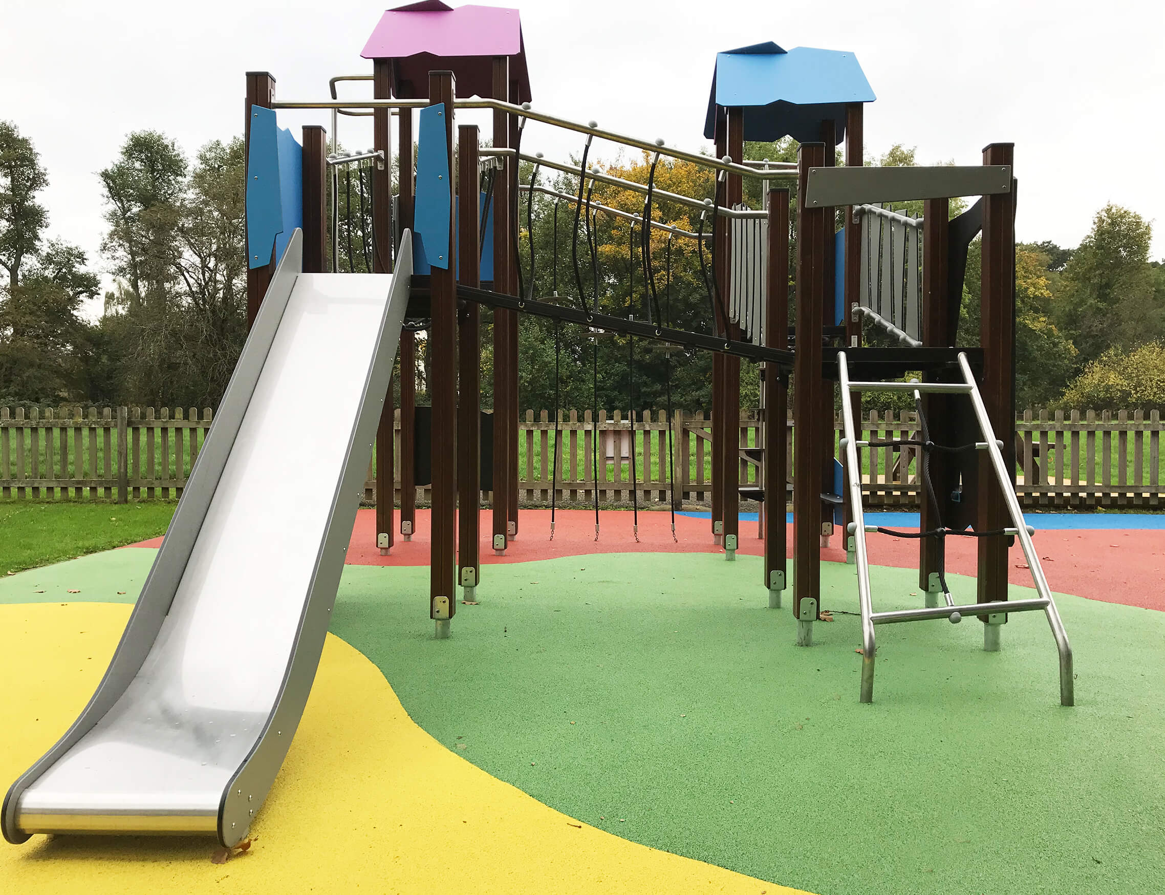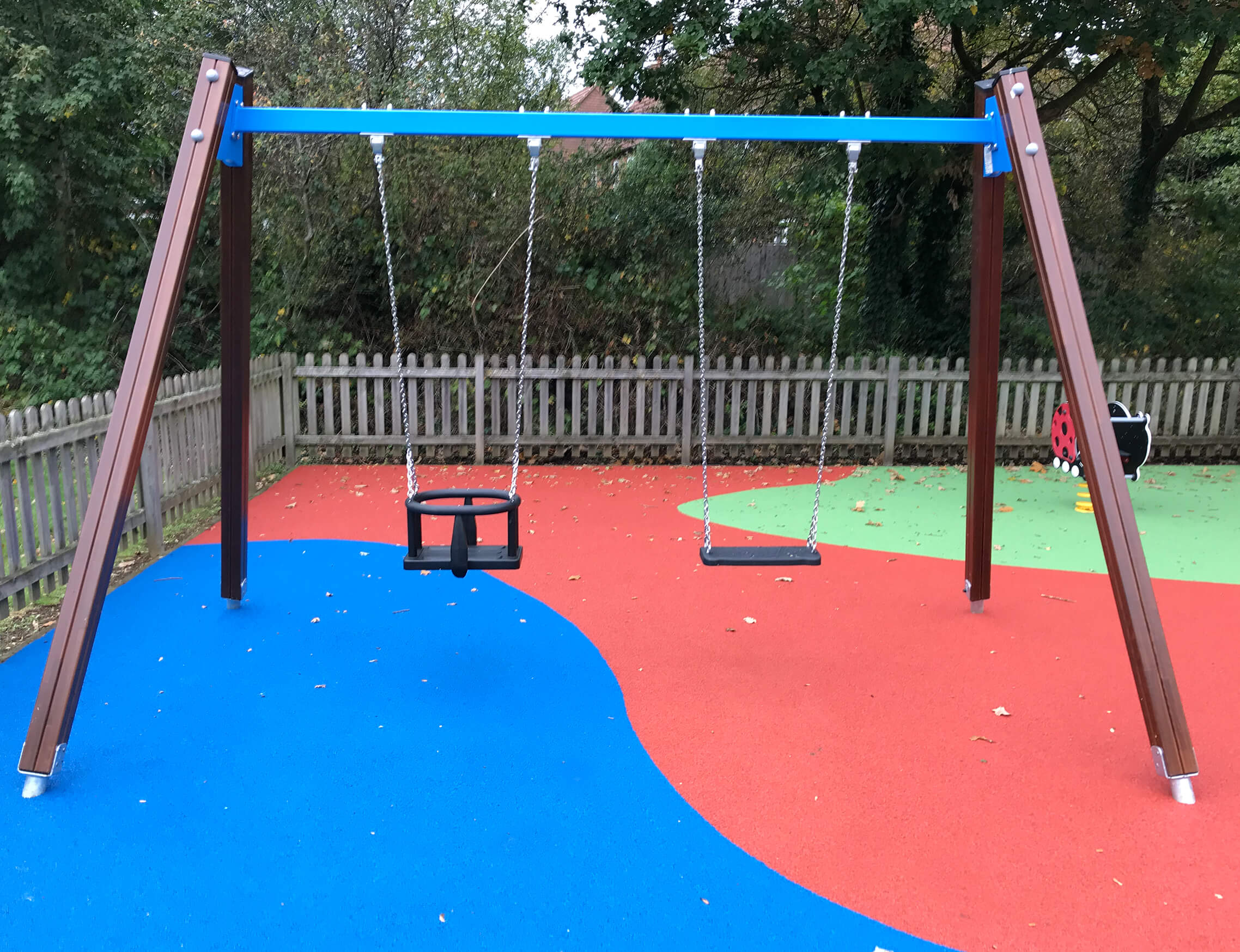 The Client were looking to transform an existing playground with new colourful wet pour surfacing around existing kit. The Client were also looking for a large multiplay unit for all age groups to be installed alongside a new swing set.
