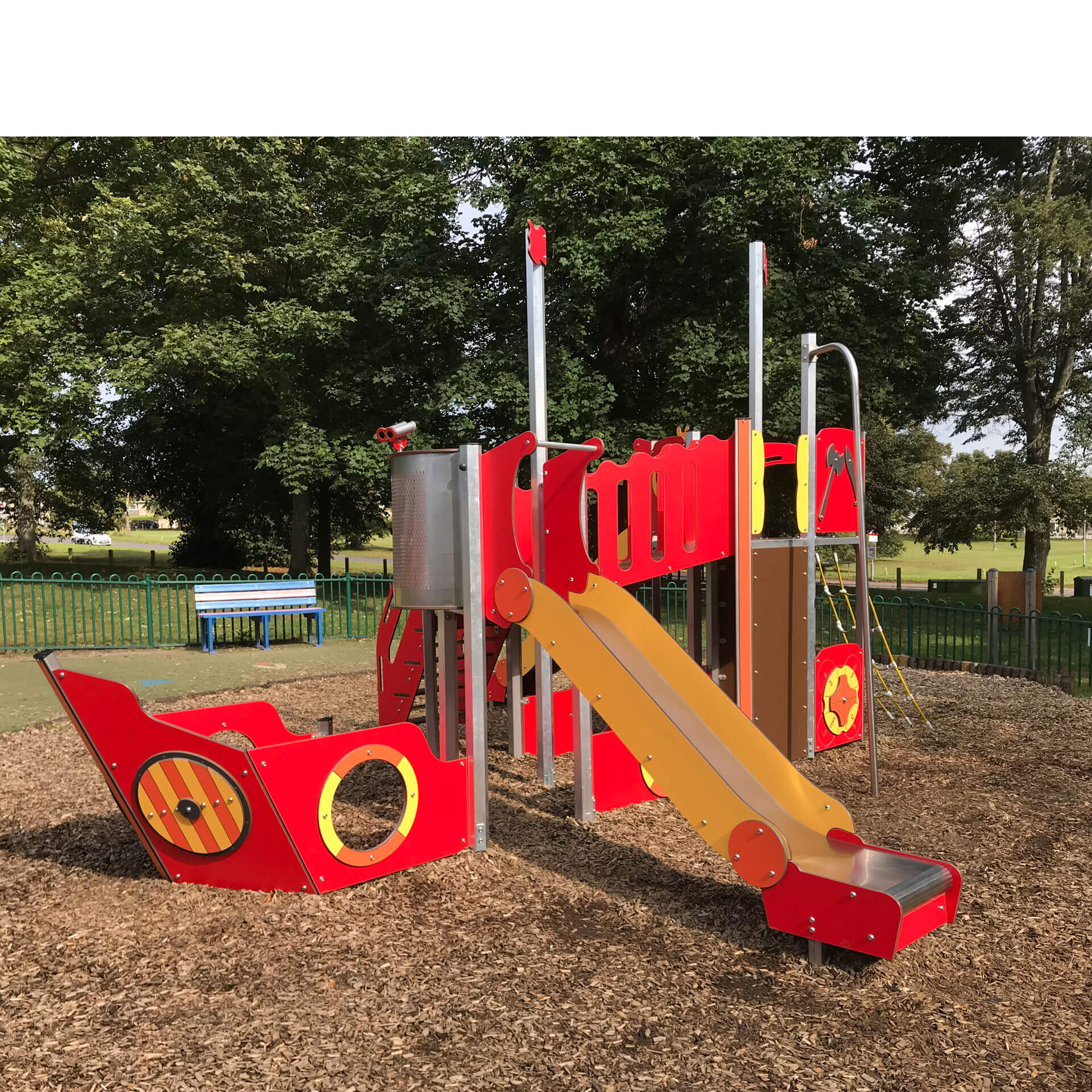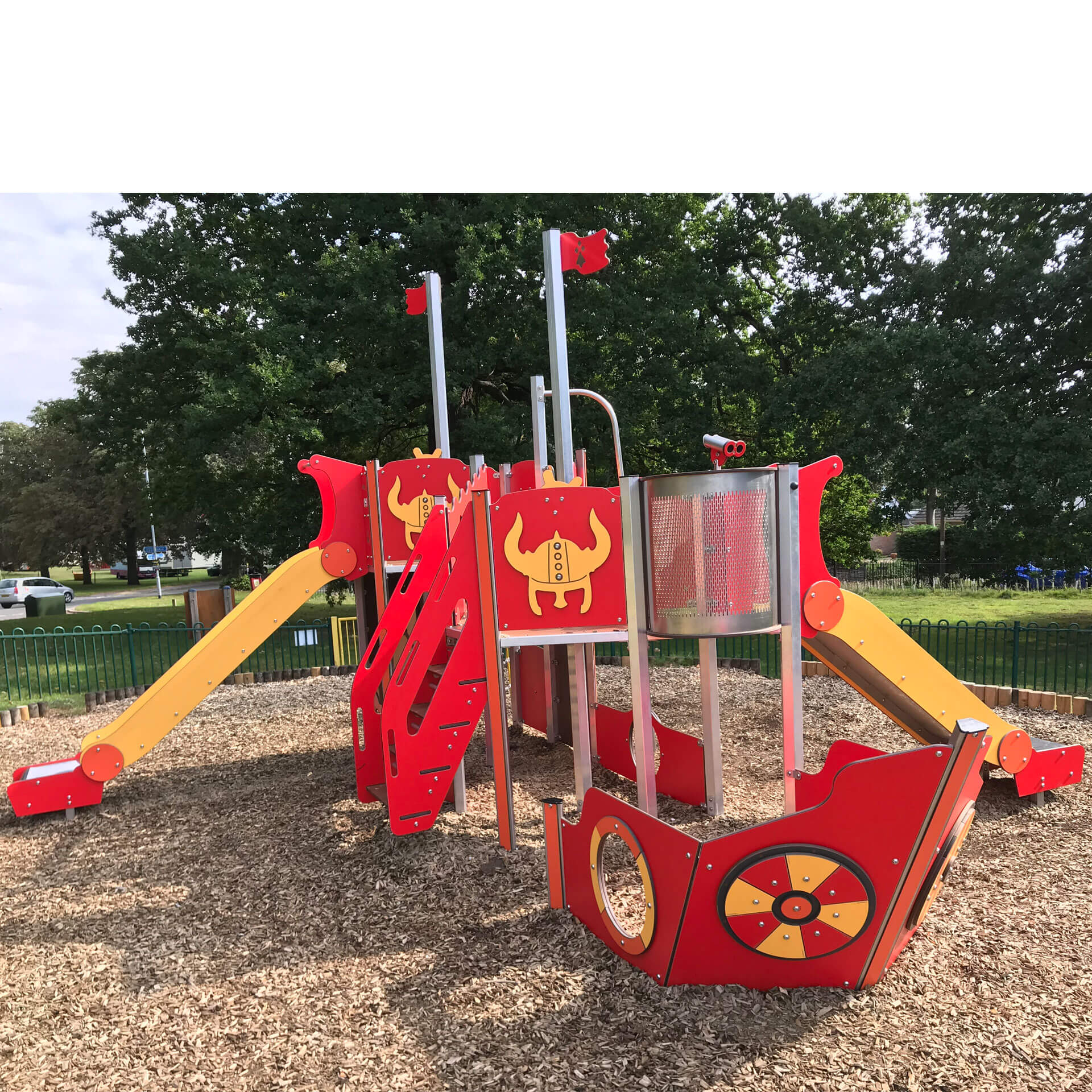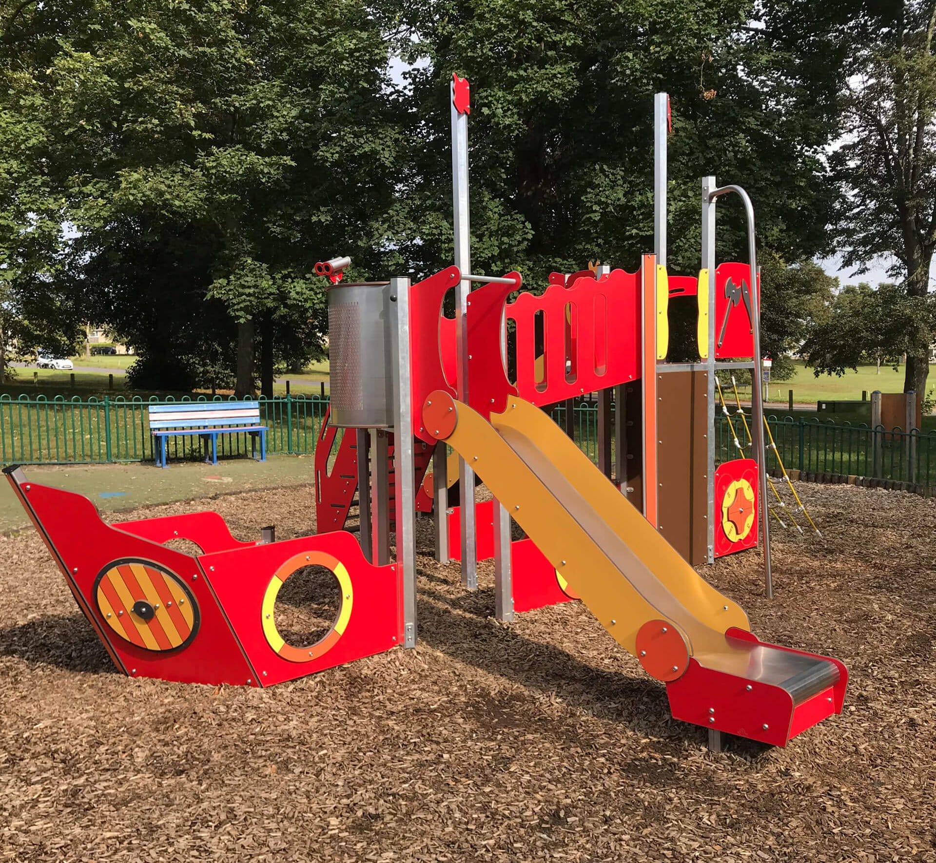 The client wanted to replace their old wooden play boat with a low maintenance, durable play boat that was bright in colour and could have bespoke Viking graphics added.