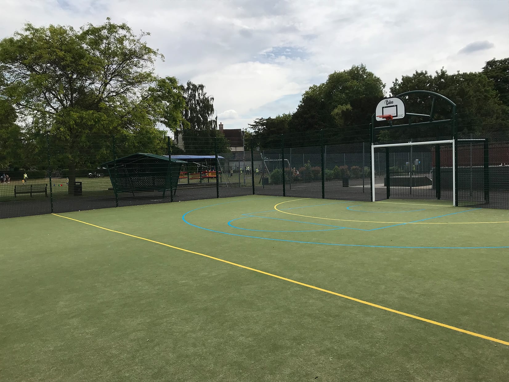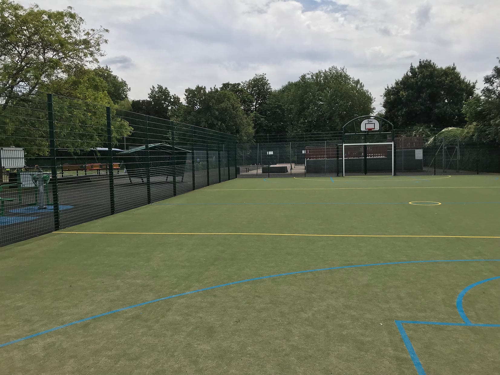 The new fitness space allows the community to workout at the gym with 18 user stations and 12 units or play football or basketball on the MUGA. Spectators can also sit and watch sports matches in the new sheltered Youth Shelters. We selected Matchplay 2 for the sports surfacing as this offers fantastic ball properties for a range of sports with low sand content for all year-round use. A great fitness site for all ages and abilities to use.