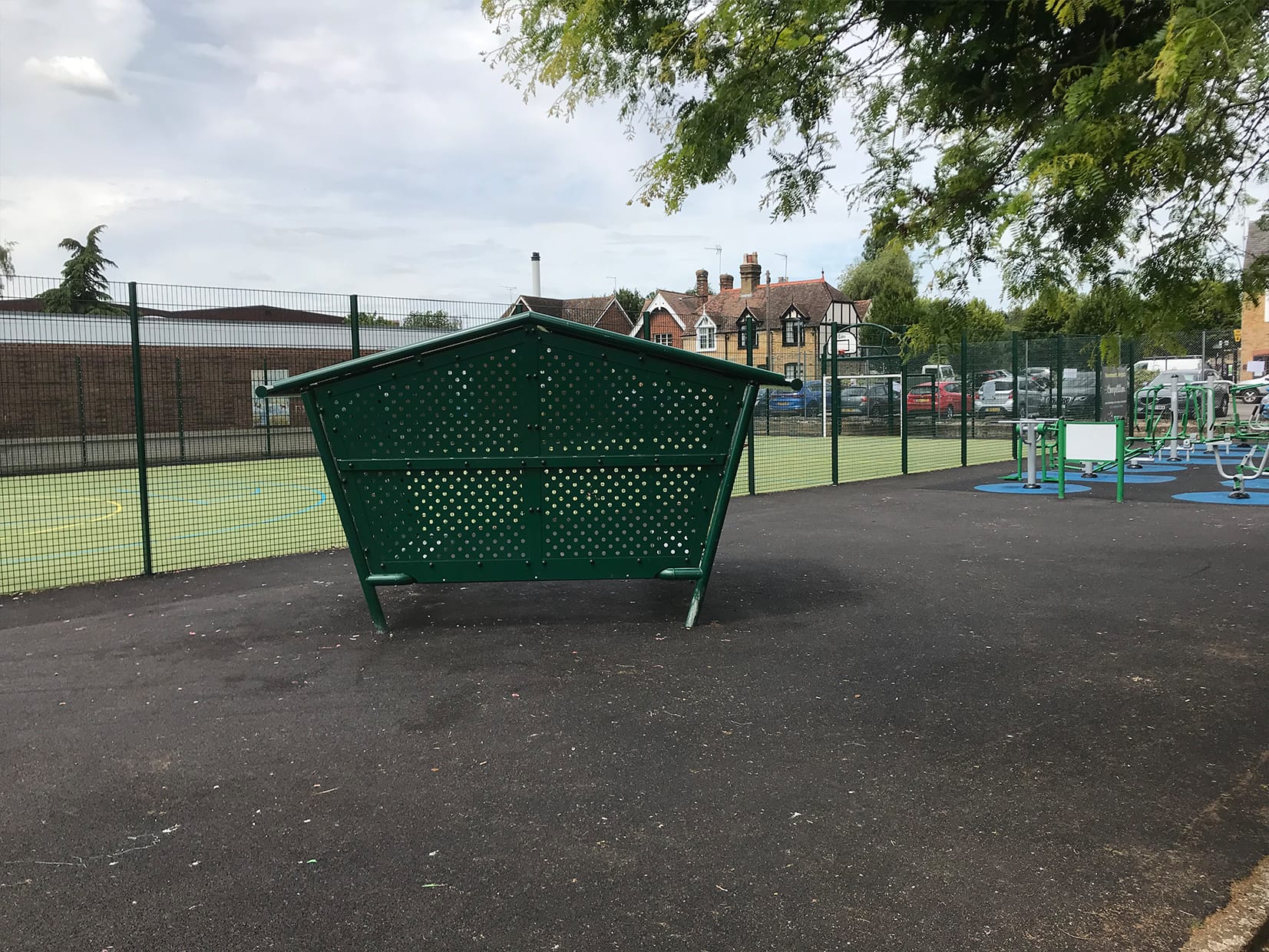 The Client were looking to install an outdoor gym alongside a new MUGA and Youth Shelter to provide a “go-to” fitness zone for the local community to use. The Client were looking for a neutral colour for all equipment along with artificial sports grass for the MUGA surfacing.