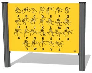 Children, teenagers and adults can improve their sign language skills, helping those that are hard of hearing to feel included in social situations. Printed onto a 100% recyclable HDPE panel, each letter of the alphabet has a corresponding hand gesture to help both those that are hard of hearing and those of hearing to improve communications with one another.
