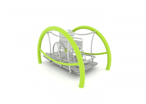 Wheelchair users aged 3 – 12 years can enjoy the motion of swinging with our Inclusive Wheelchair Swing. Children simply go onto the platform, attach their wheelchair breaks and hold onto the metal poles on either side of the swing. Momentum will be generated by the movements of the child whilst they hold onto either side of the wheelchair swing.
