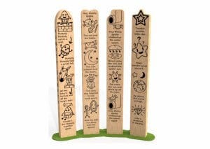 Our nursery rhyme sensory totem pole encourages children to explore textures and shapes, improving their sensory perception. Children can collaborate with one another to identify the shapes engraved on our nursery rhyme sensory totem pole which in turn improves their ability to communicate and socialise.