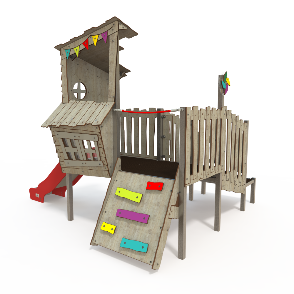 Playground Log Cabin with Bridge