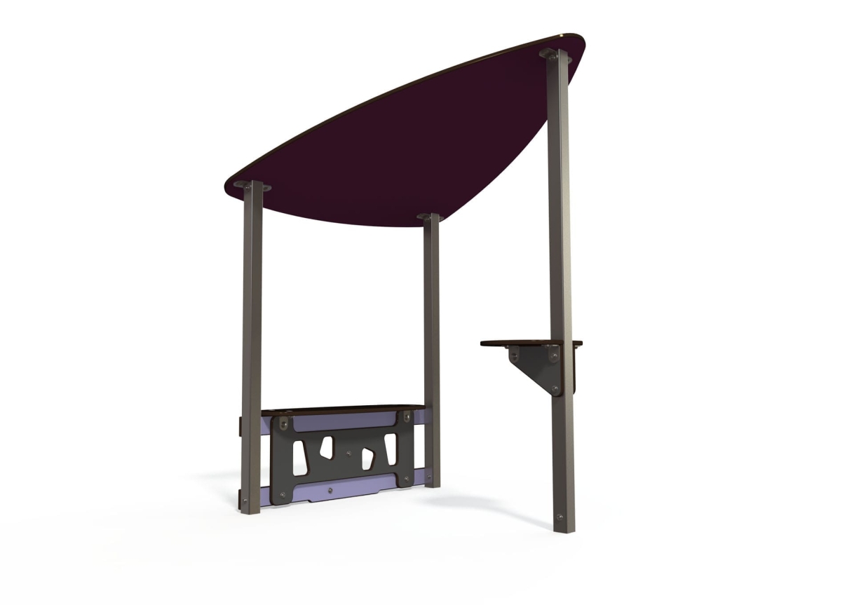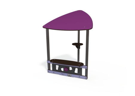 A simple classic playhouse with low level bench seat and shelf space.