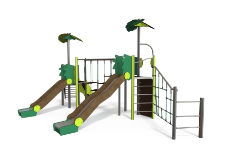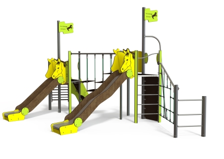 This multi play unit has a great range of activities included. 2 slides, step bridge, firemans pole and many more!