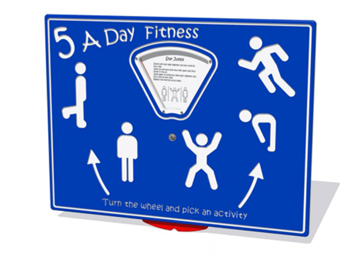 Help outdoor gym users decide which exercise they should complete with this 5 a day fitness play panel.