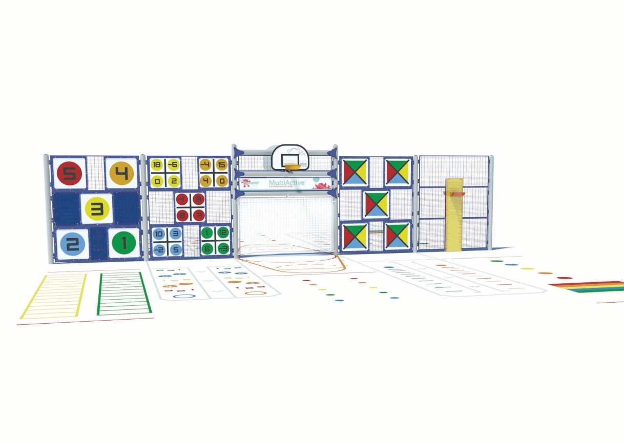 Colour Wall, Maths Leap Wall, Team Knockout Wall, Jump Wall and supplied with Goal and Nylon net