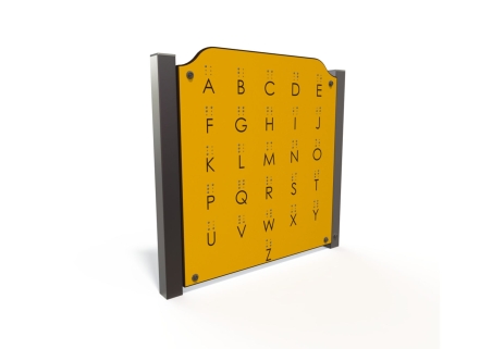 This inclusive play panel uses braille to distinguish the alphabet for sensory play.