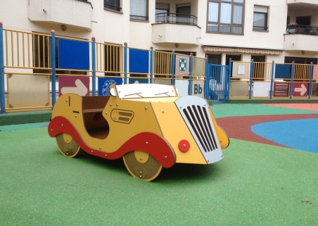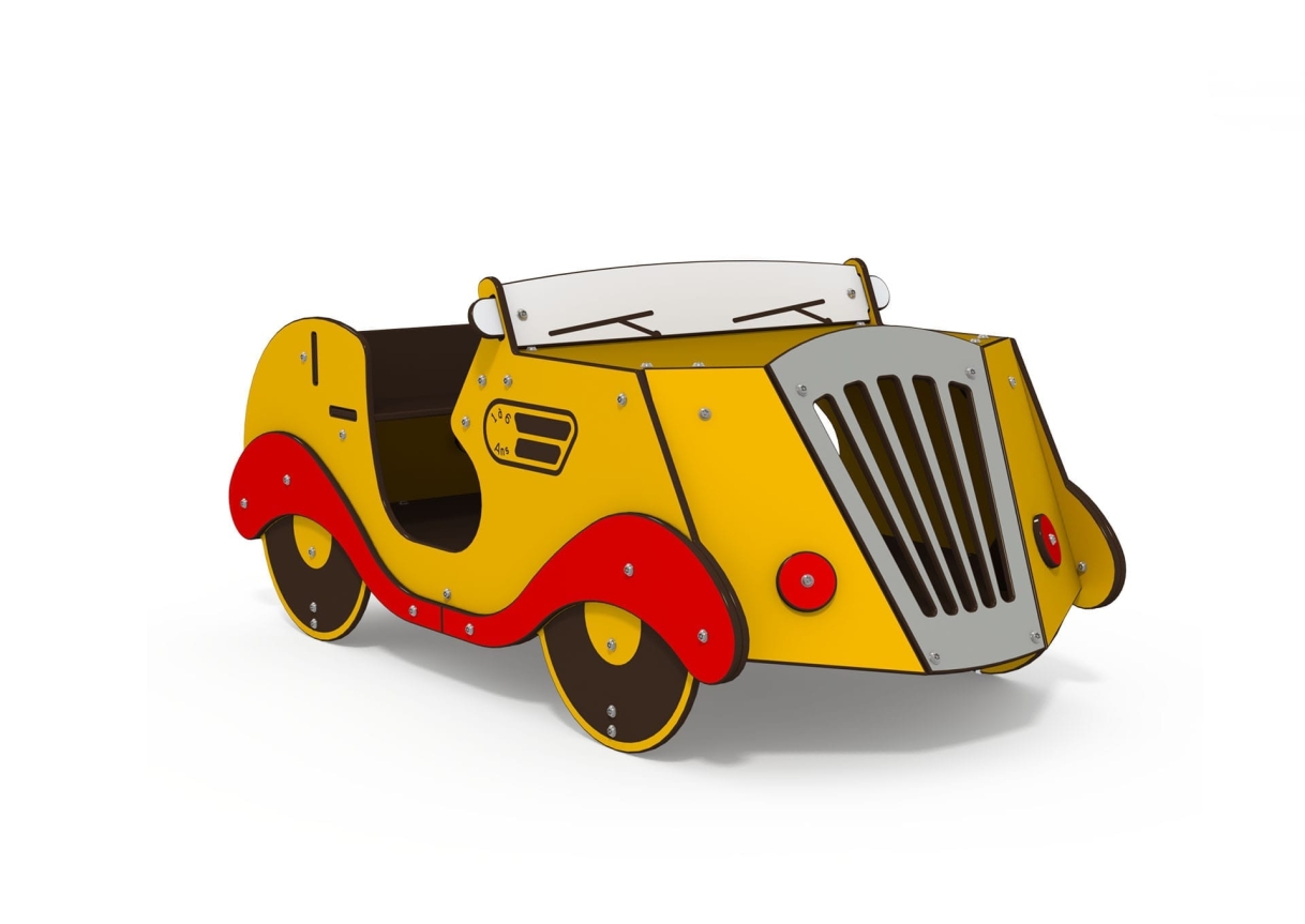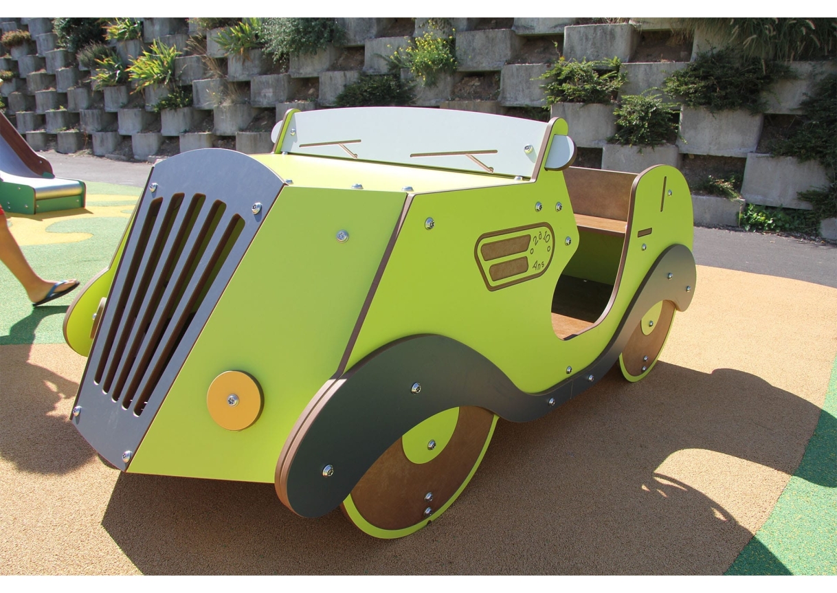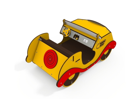 The Car has seating, a steering wheel, gear change and moving play panels.