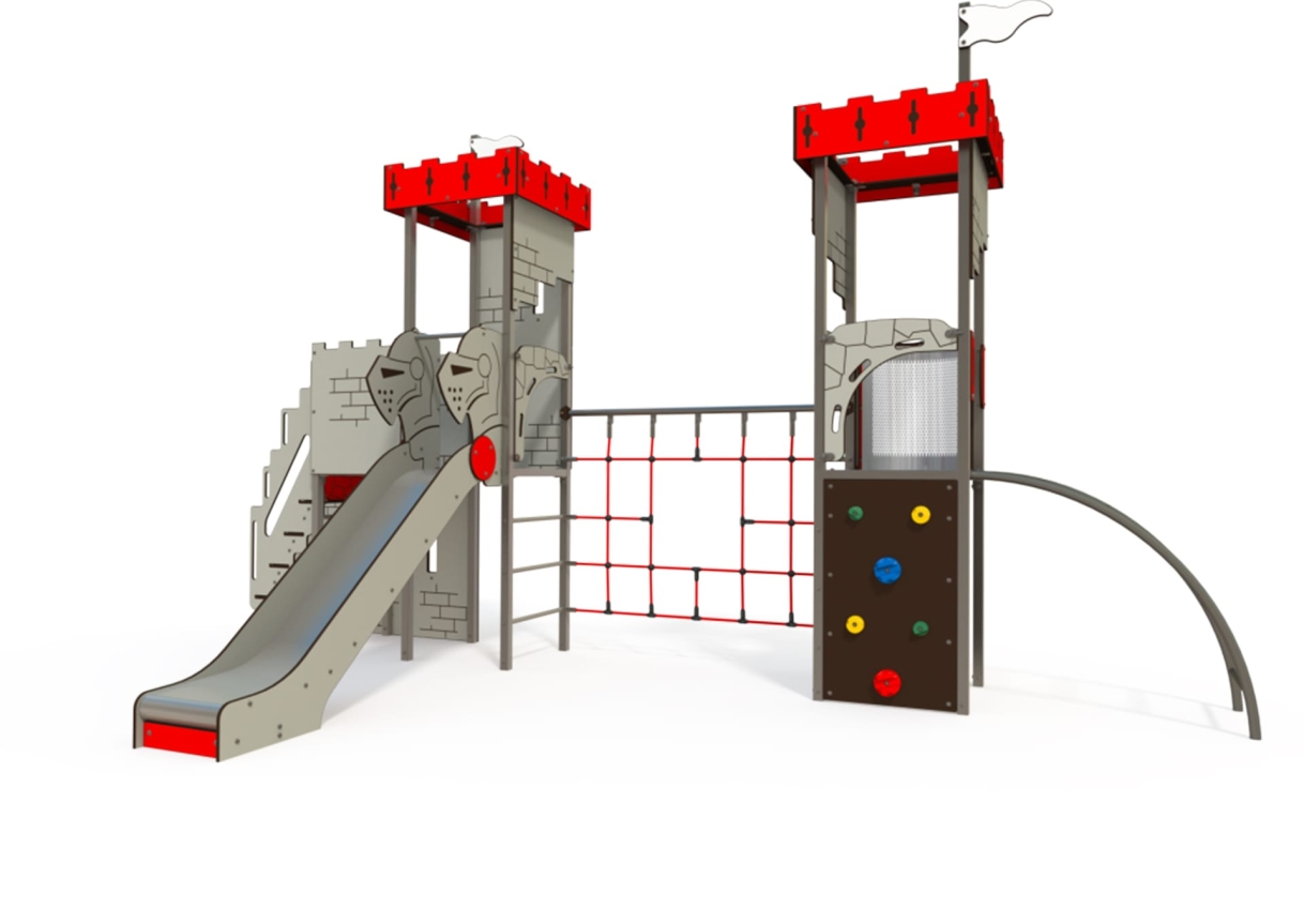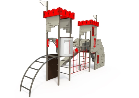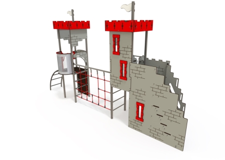 This wonderful castle unit is packed with play value for the playground. With curved ladder, easy access steps, horizontal climb net, climb wall, slide and lookout tower. Children can role play defending their castle from the enemy!