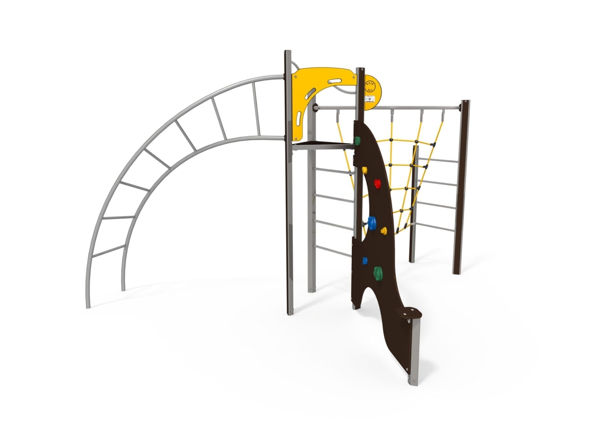 This unit offers a climb wall, twisted ladder, twisted climb net and ladder.