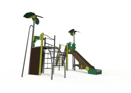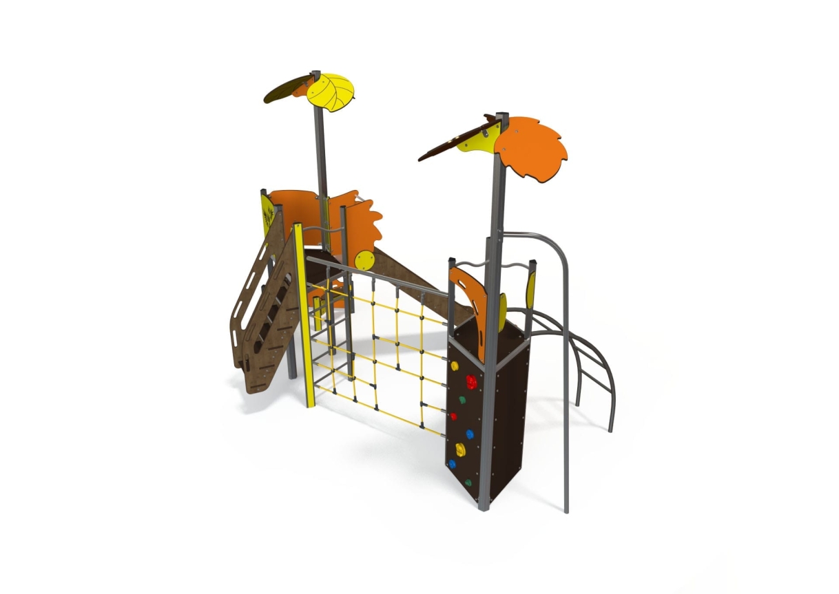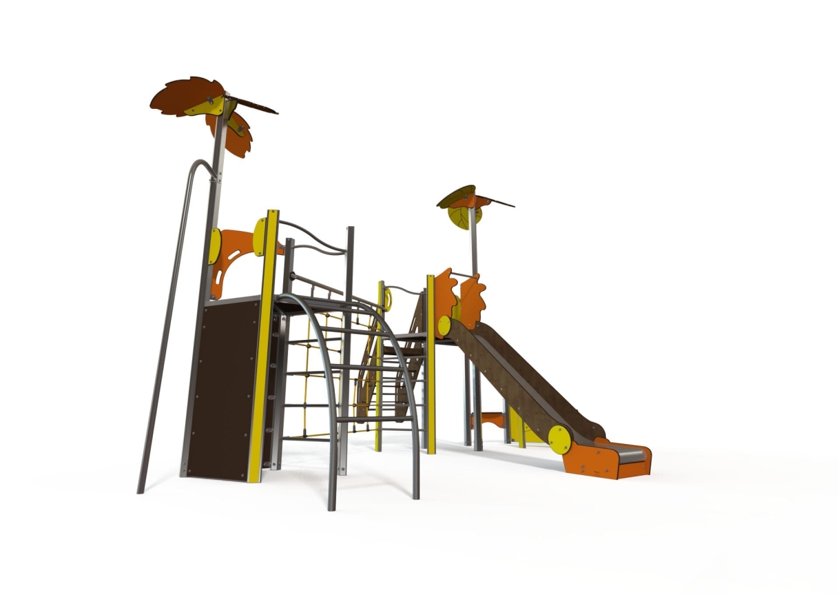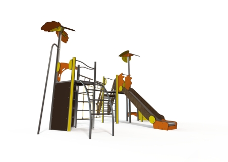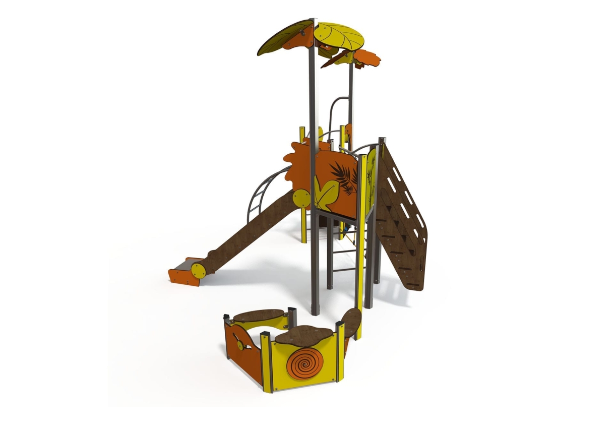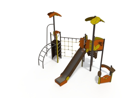 This medium size play unit is packed with activities, slide, climb wall, firemans pole, curved ladder, climb net and seating space, this unit will be a hit with all ages. The small play space also greats a lovely area for younger years to interact.