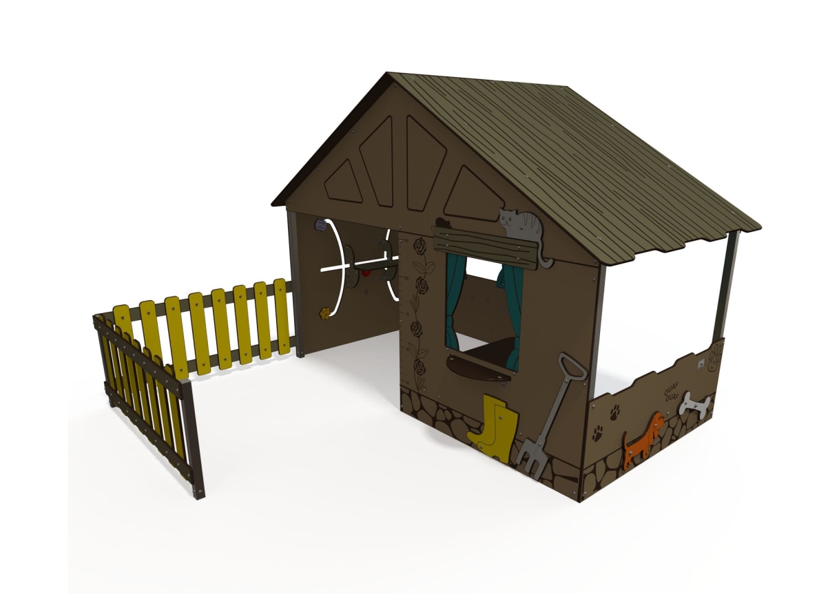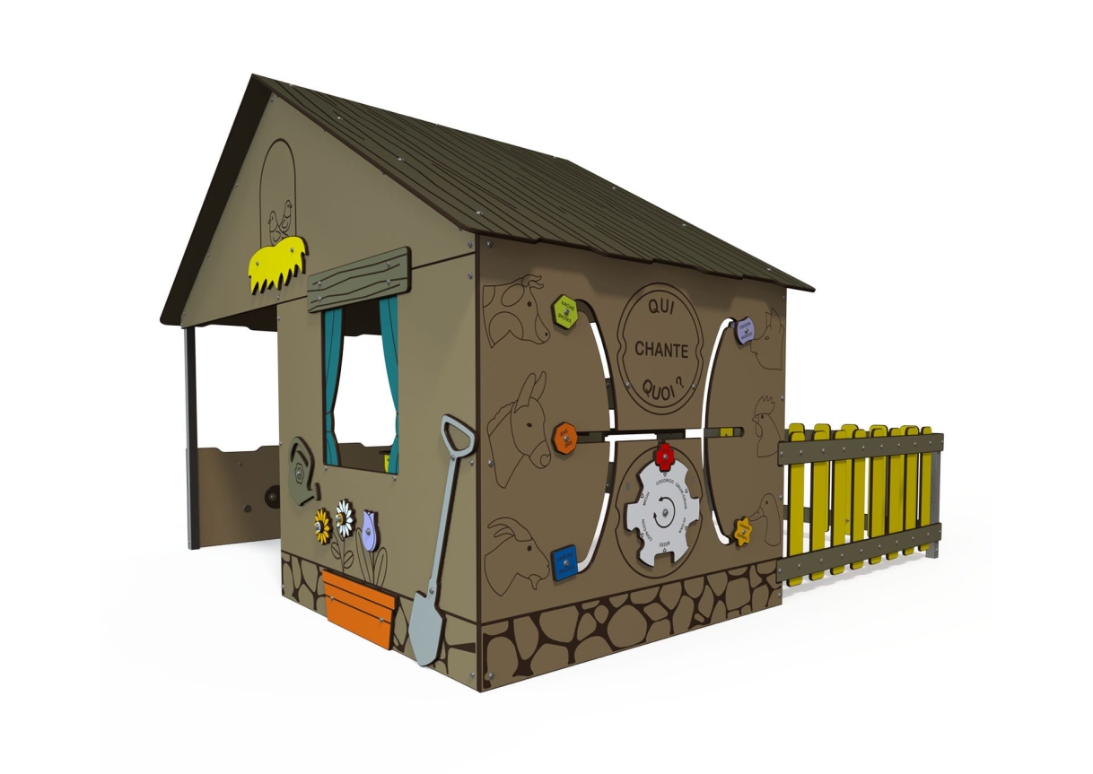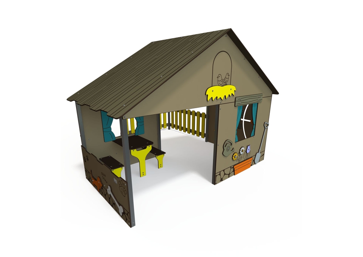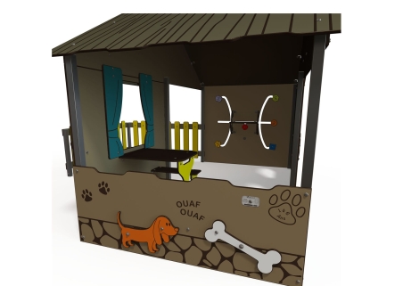 This large playhouse is great for lots of children to explore and play. With seating and loads of space inside, play panels and fun themed panels around the outside this unit will provide hours of fun!