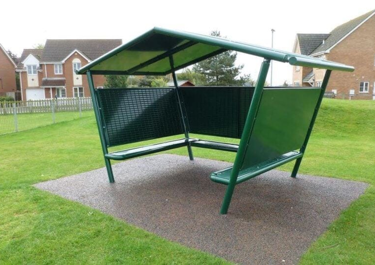 The Loft Shelter is a simple Youth Shelter with enclosed back and sides. It is fantastic for any open space and can fit approximately 12 people.