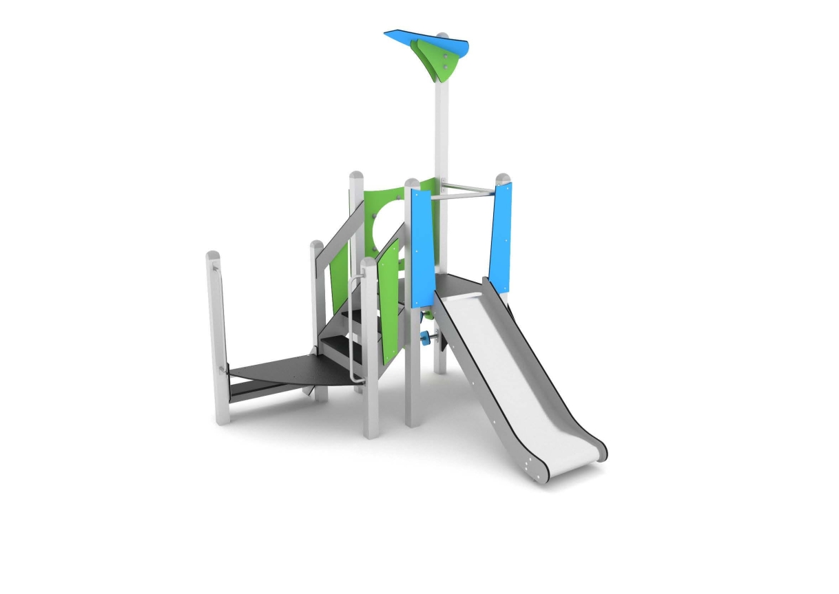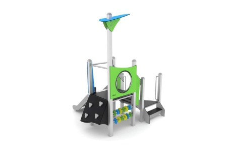 This unit has a climbing wall and steps, along with a low level shape spinner and look out bubble. Children will love climbing up, looking out and sliding down.