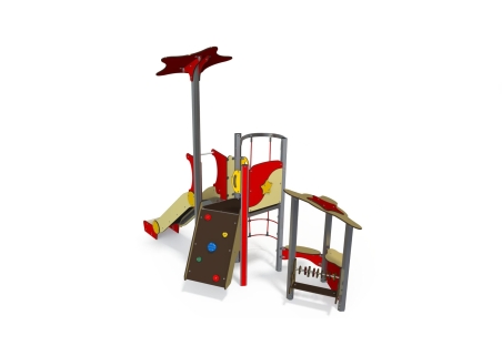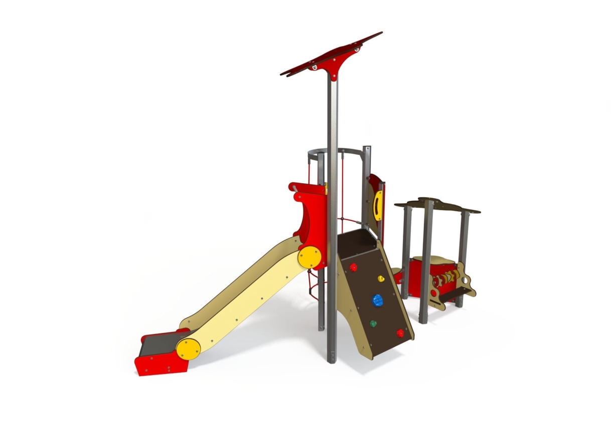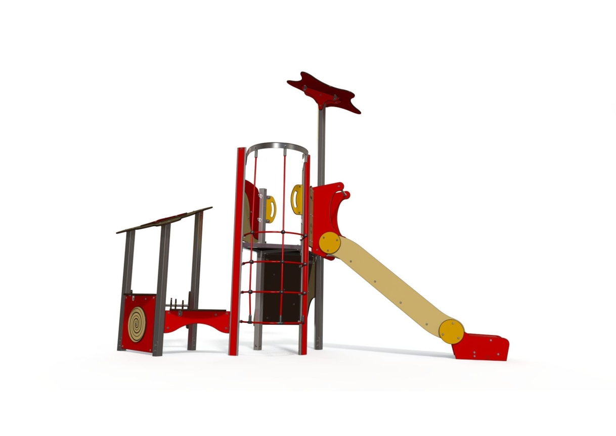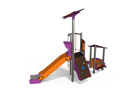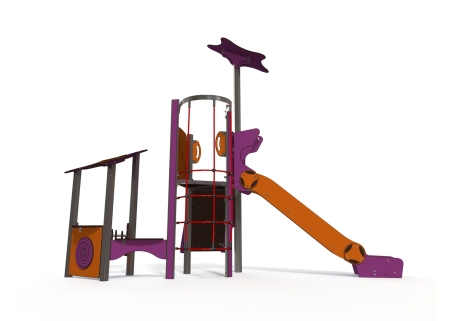 A wonderful multi feature play unit for Supernova covering all aspects of Physical, Cognitive and Social and Emotional Play . With Slide, climb wall, climb net, play panels, kiosk and seating area. The added play panel area makes this unit great for all age groups from toddlers to juniors.