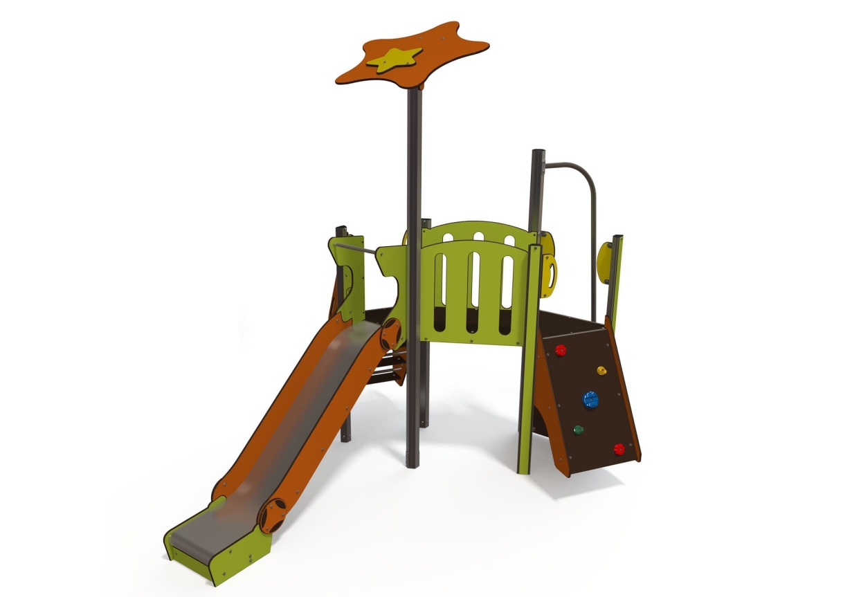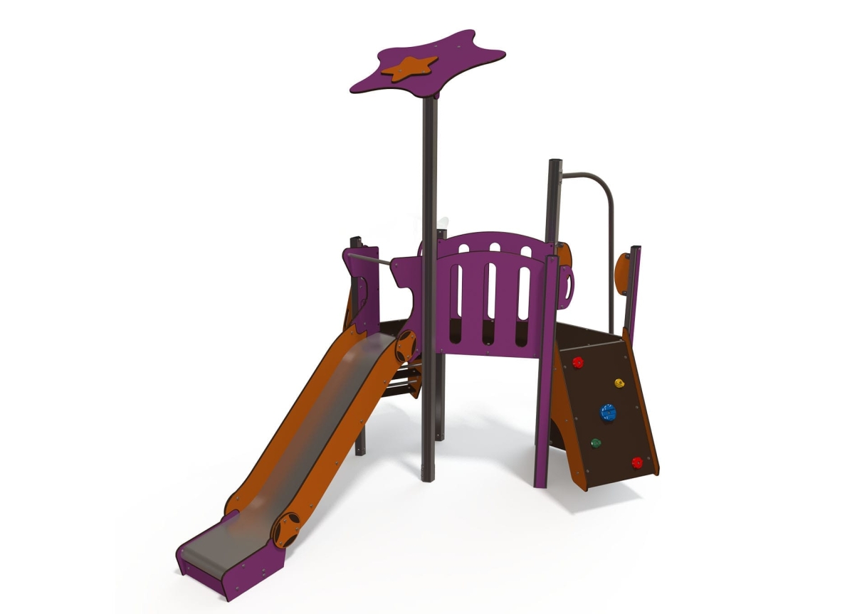 The Supernova Space Saver is a fantastic unit which offers lots of play features in a compact size. With slide, mini climb wall, fireman's pole, bridge and easy access steps.