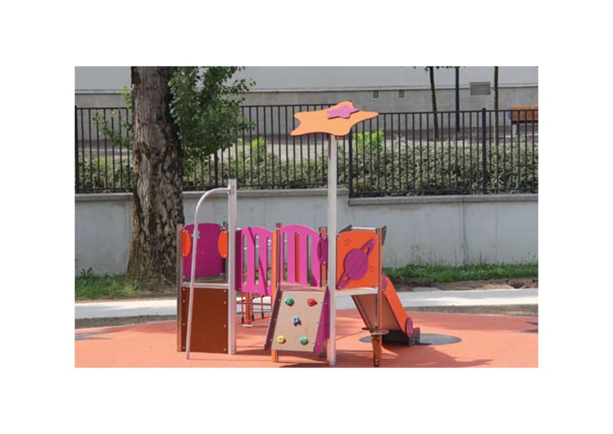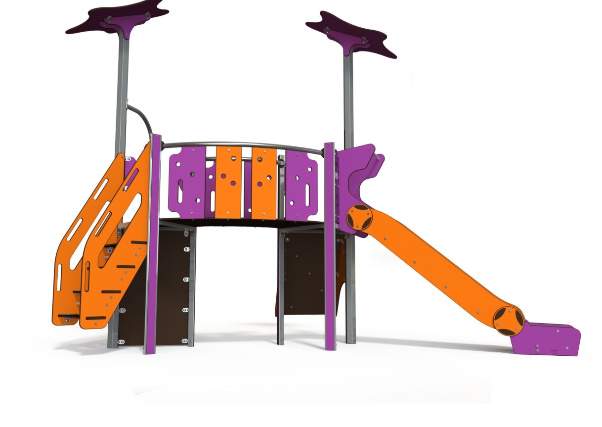 The Supernova Bridge offers a fun play unit for older ages. With slide and bridge platform, children can climb onto the unit with the easy access steps or mini climb wall, then descend down the slide or firemans pole.