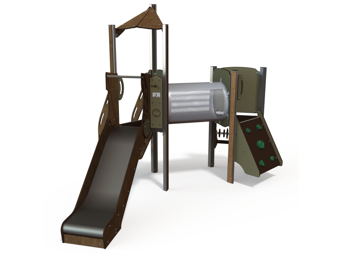 This unit is perfect for children's development at the younger years stage. Kids can use the mini climb wall to gain access to the tunnel, crawl through and slide down the slide as a reward. For those still developing their confidence there is also easy access steps to get to the slide, the unit also offers a play panel.