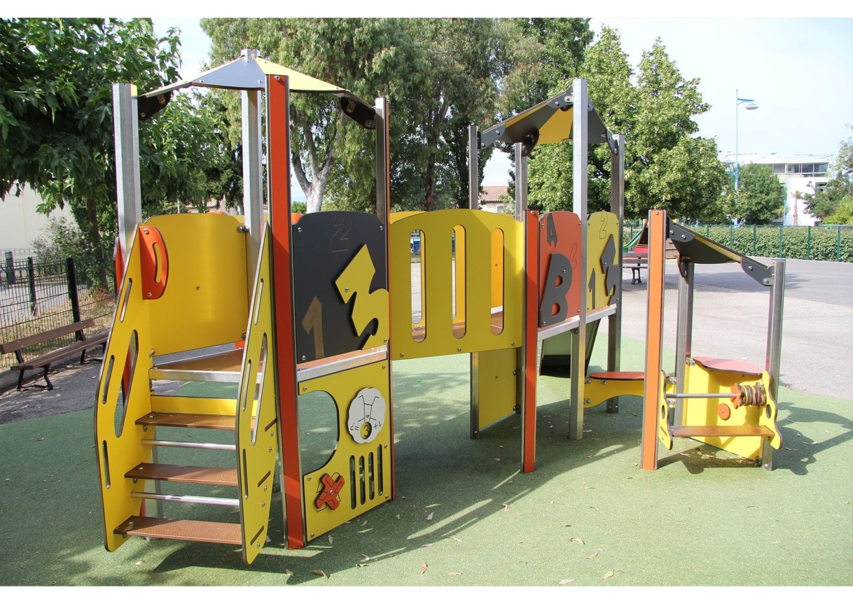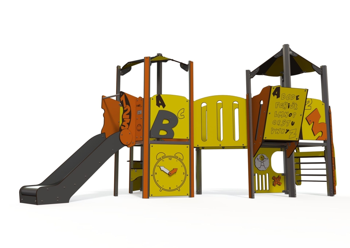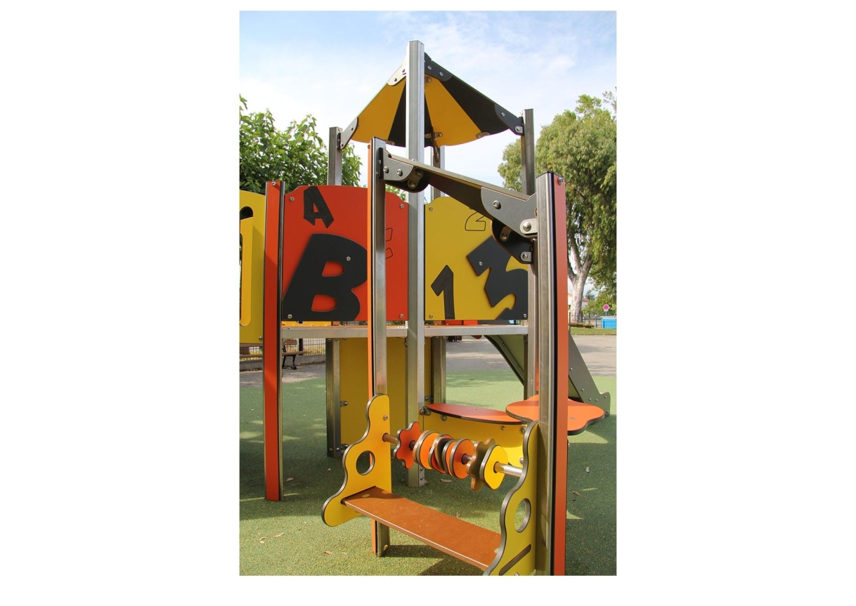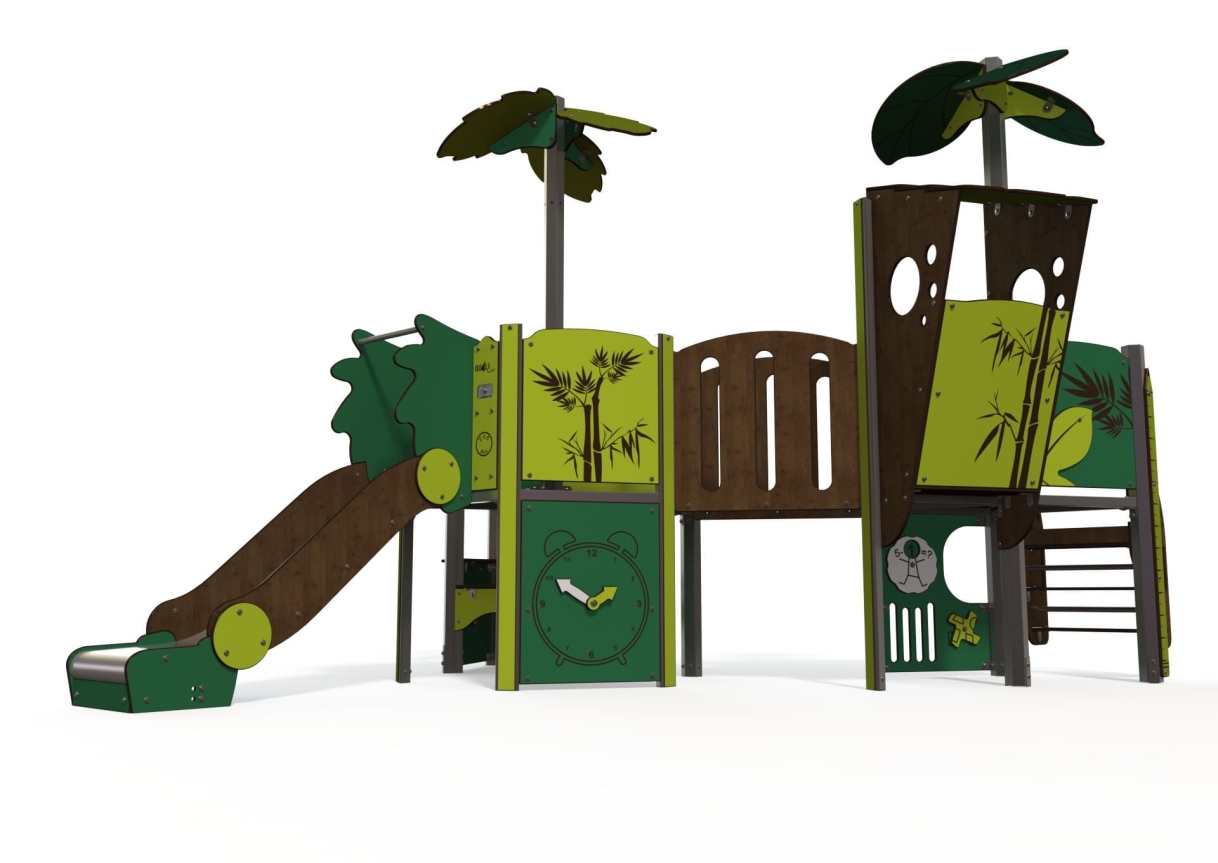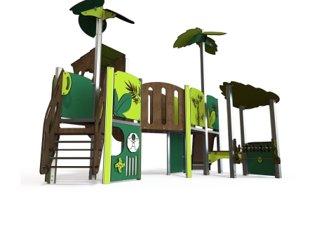 The Explorer offers a slide, bridge, look out tower, easy access steps, play panels and low level seating which is great for social and emotional development.