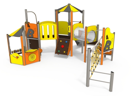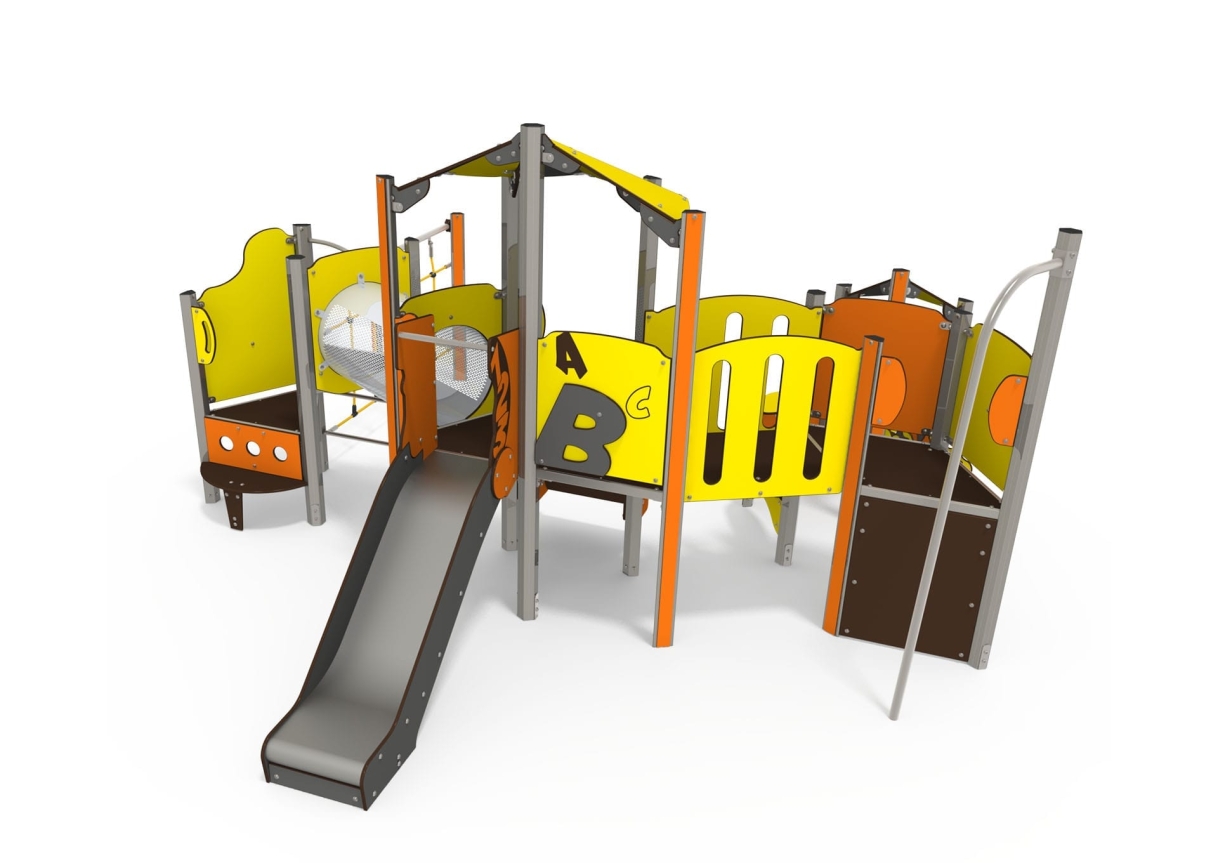 Wow! This supersize unit is fun for all the age groups, with a small play panel zone for younger years and a fun climb net and climb wall for older years, this unit will provide hours of fun. A stunning eye-catching playground piece.