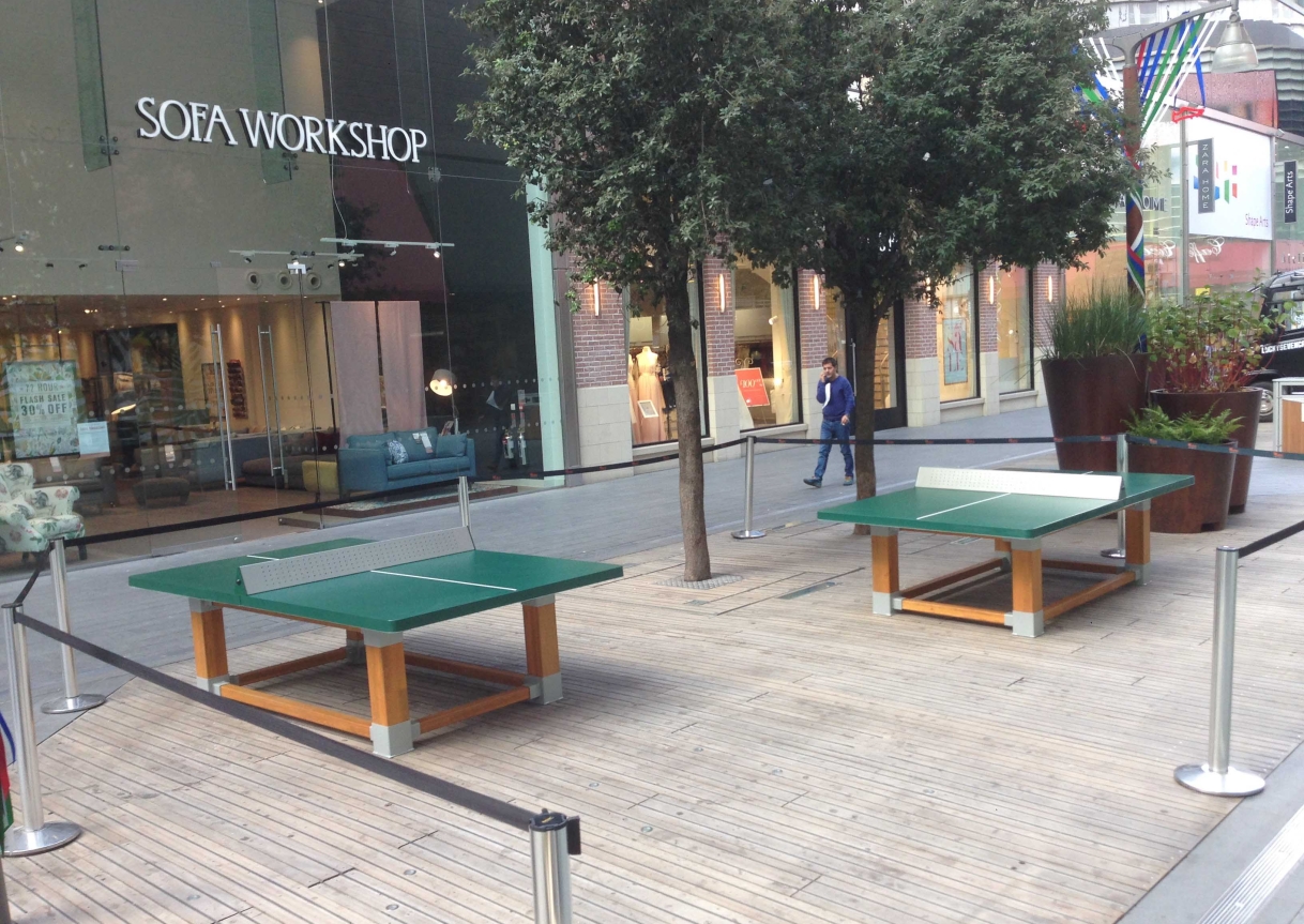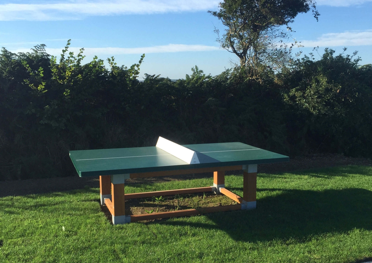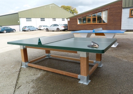 Natura is an outdoor table tennis table designed with a timber frame that blends into the natural environment.