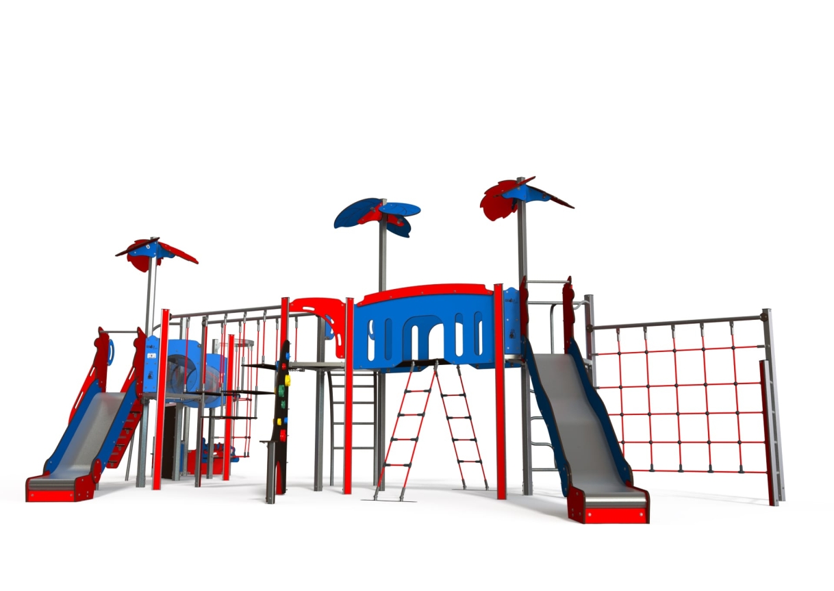 This great multiplay unit offers a wide range of activities which includes bridges, tunnels, rope ladders, slides, play panels, climb walls, climb nets, fireman's poles and many more! This unit is suitable for lots of children to play at one time and will be a fantastic feature unit in any playground.