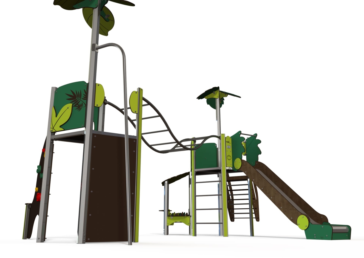 This play unit is packed with activities including a wavy overhead ladder, climb wall, slide and fireman's pole for ages between 2-12 years.