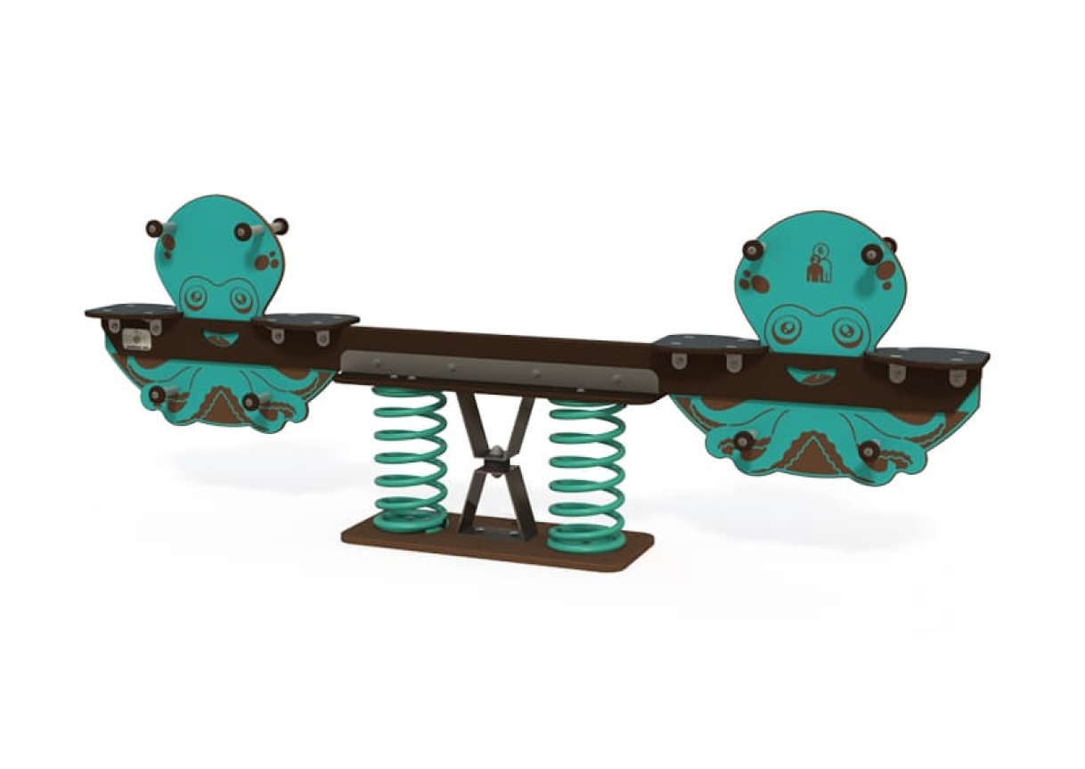 A lovely Octopus Seesaw with space for four users! With two seats on both ends and hand and foot holds, children will love bouncing with friends.
