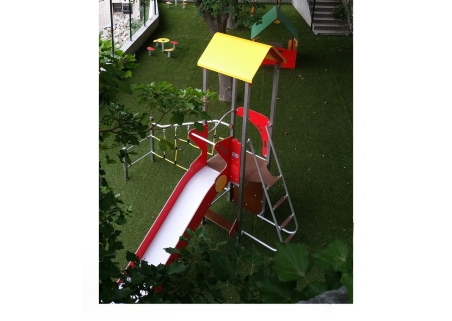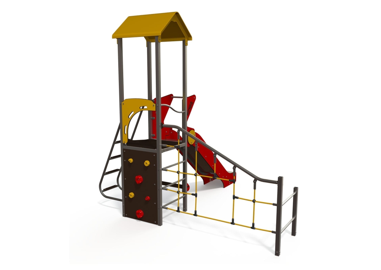The Scale and Slide unit is great for those with limited space. The unit offers a climb net, mini climb wall, ladder and a fun slide all in a compact unit size.