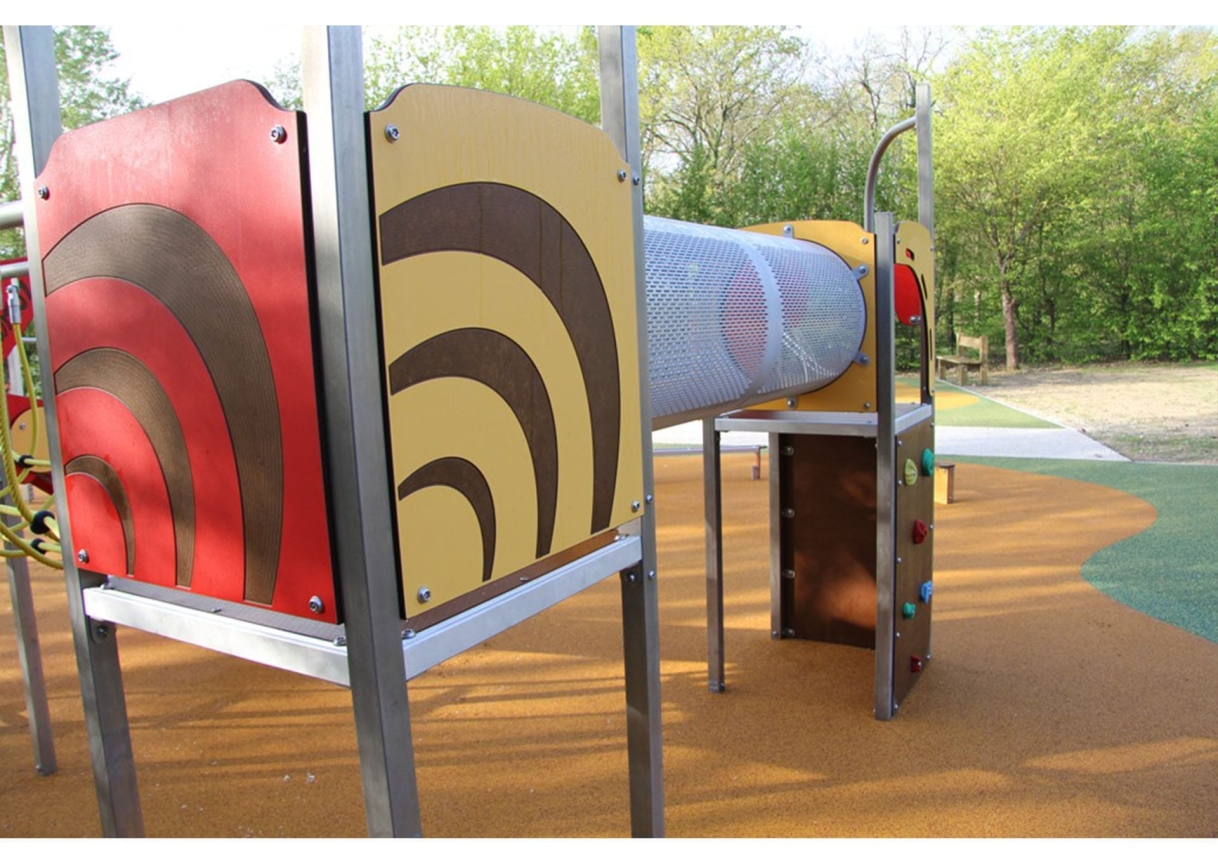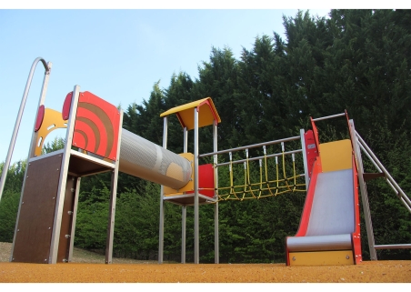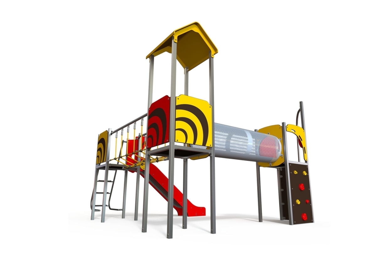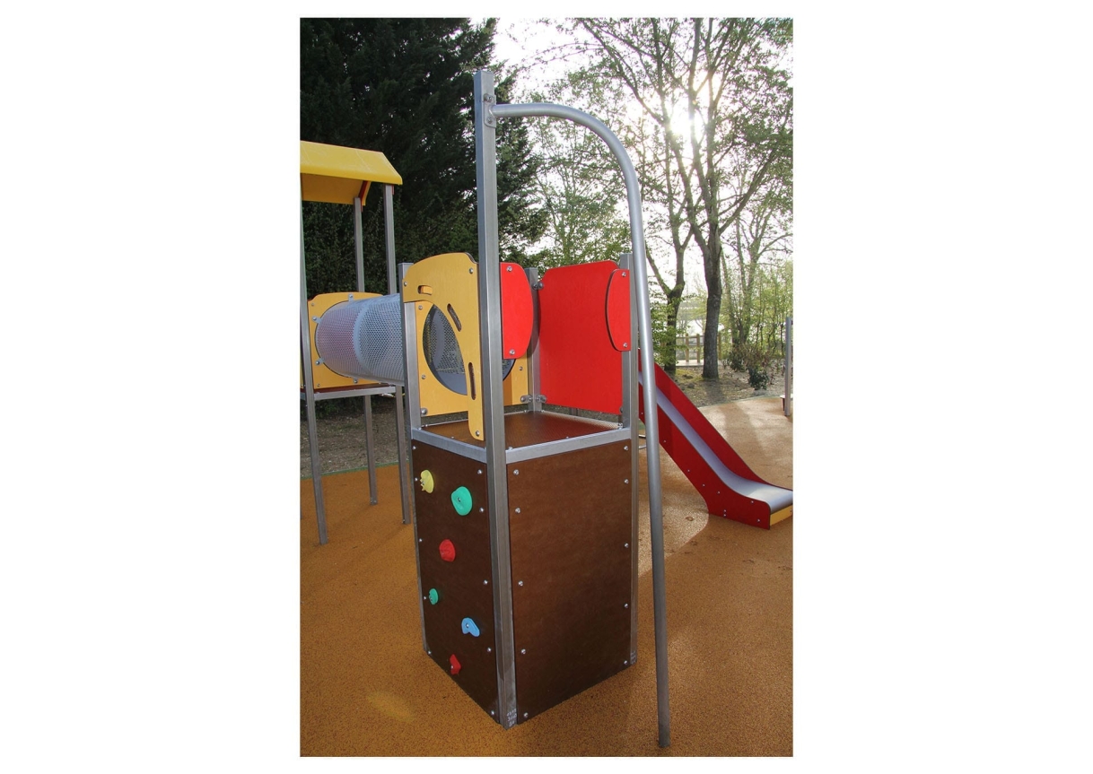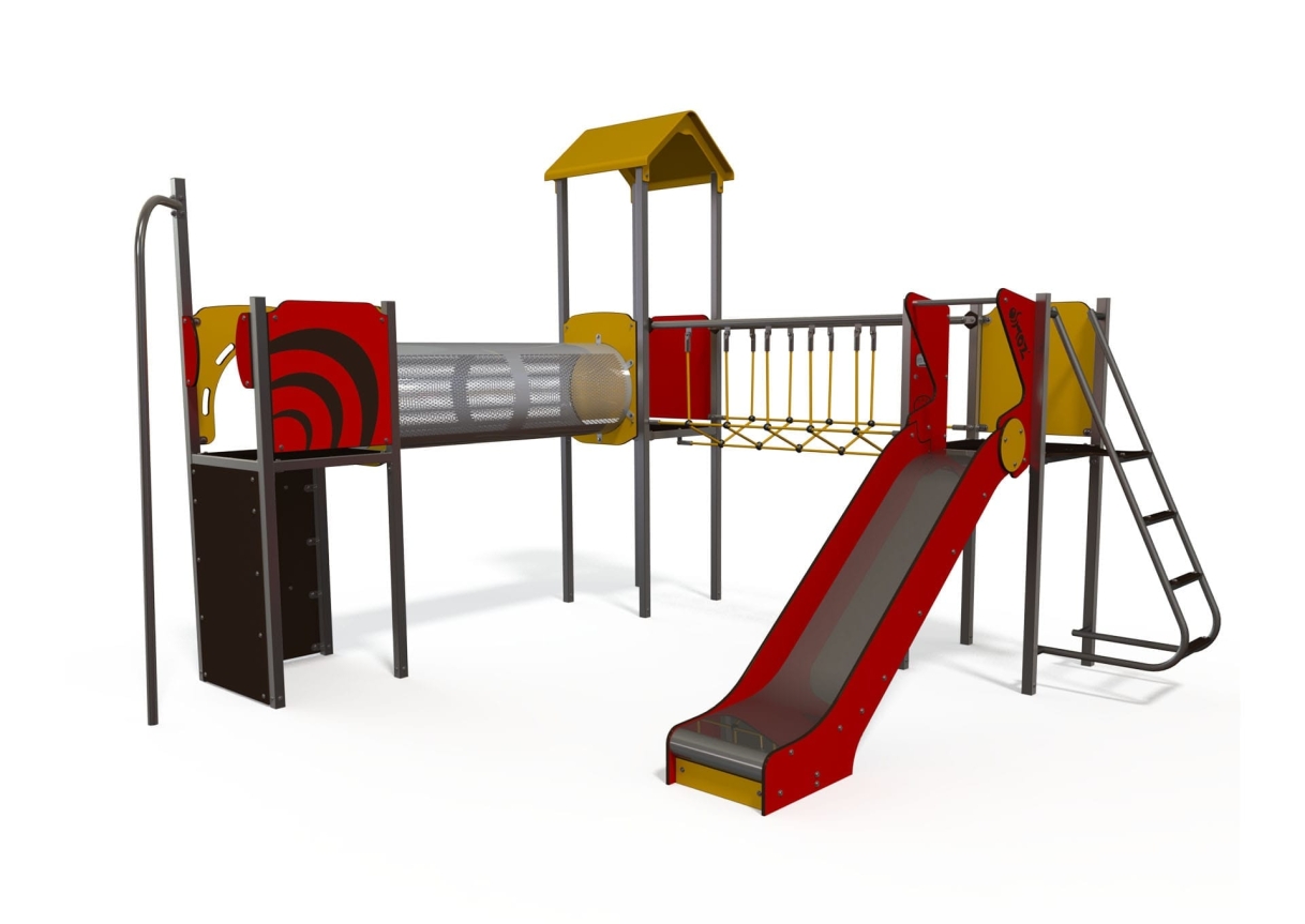 The Osmoz Superplay is a stunning play unit. Offering high up play the unit has a climb wall, ladder, tunnel, rope bridge, firemans pole and slide.