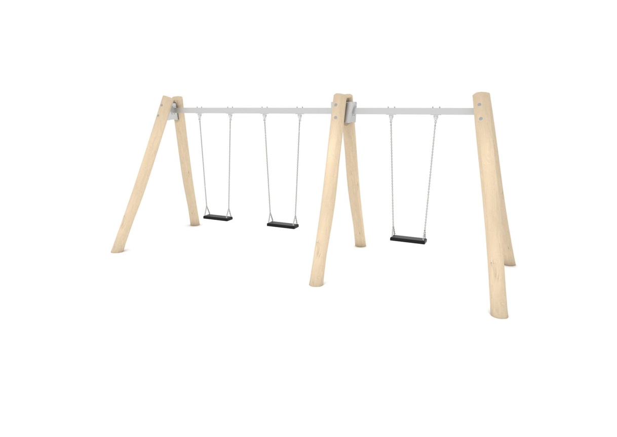 A lovely Robinia frame swing set with one double seat bay and one single seat bay. Seats can be selected from a range offered.