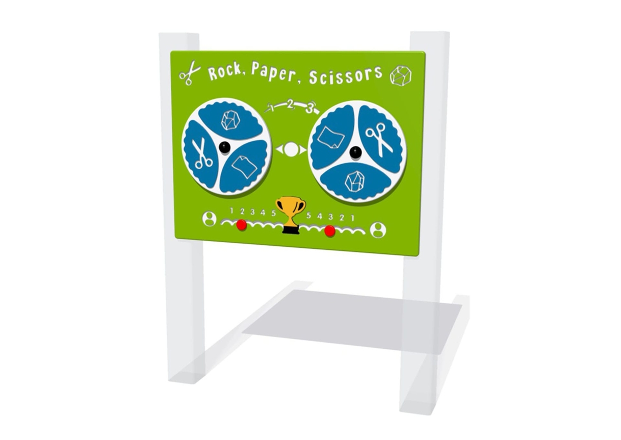 This is a 2 player game by spinning the wheel to play rock, paper, scissors.