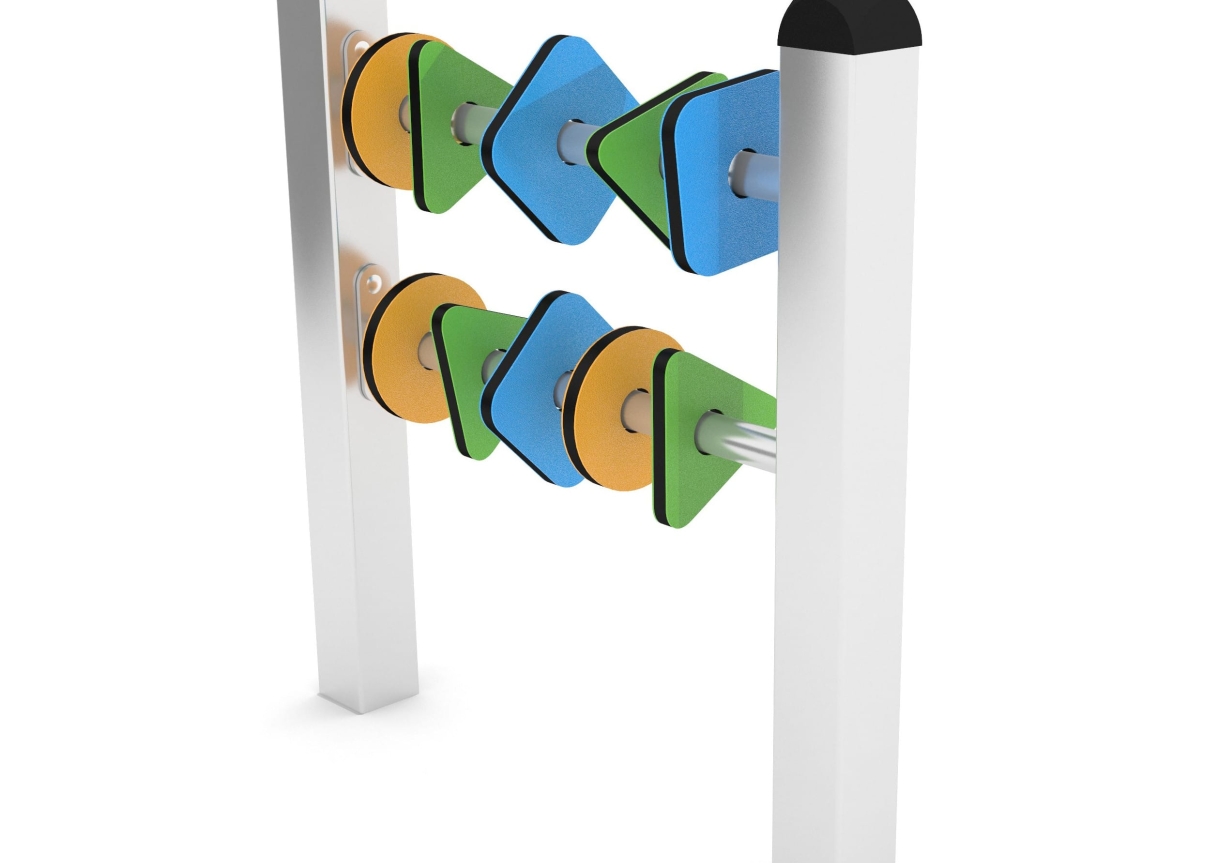This play panel features spinning and sliding the shapes back and fourth for a first taste of the playground experience.