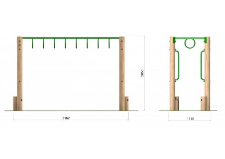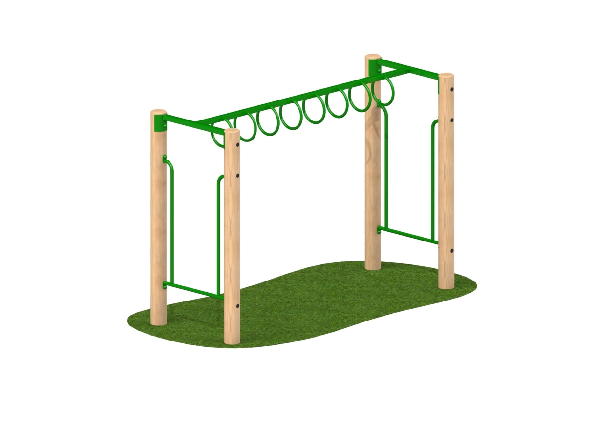 Overhead activities help strengthen inner core muscles and increase physical fitness. The tarzan ring beam allows users to swing from hoop to hoop to reach the other side. Perfect as part of a trail.